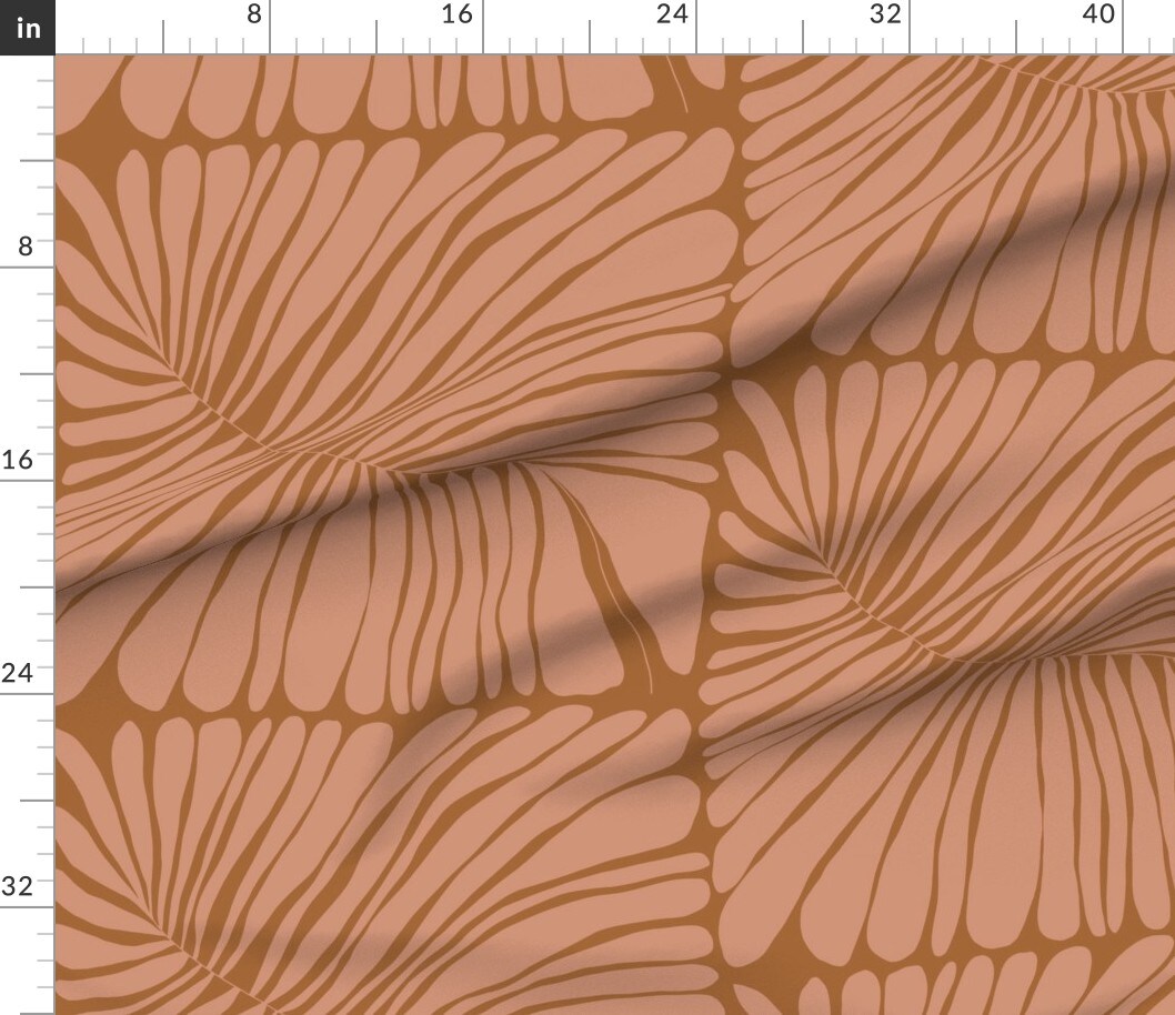Abstract Botanical Terracotta Square Tiles Pink Leaves Retro Geometric Plant Jumbo Custom Printed Fabric by Spoonflower Various Fabrics by the Yard or Fat Quarter