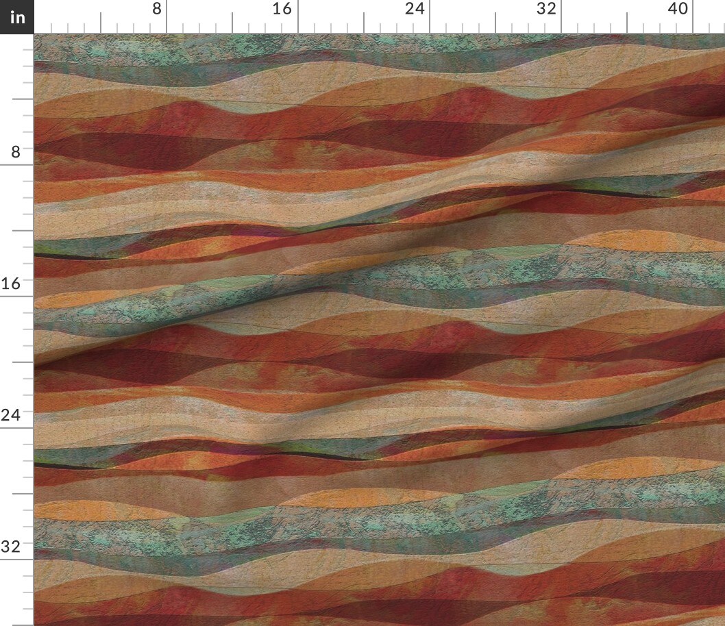 Abstract Landscape Travertine Look Sandstone Coral Orange Teal Green Turquoise Arizona Southwest Art Custom Printed Fabric by Spoonflower Various Fabrics by the Yard or Fat Quarter