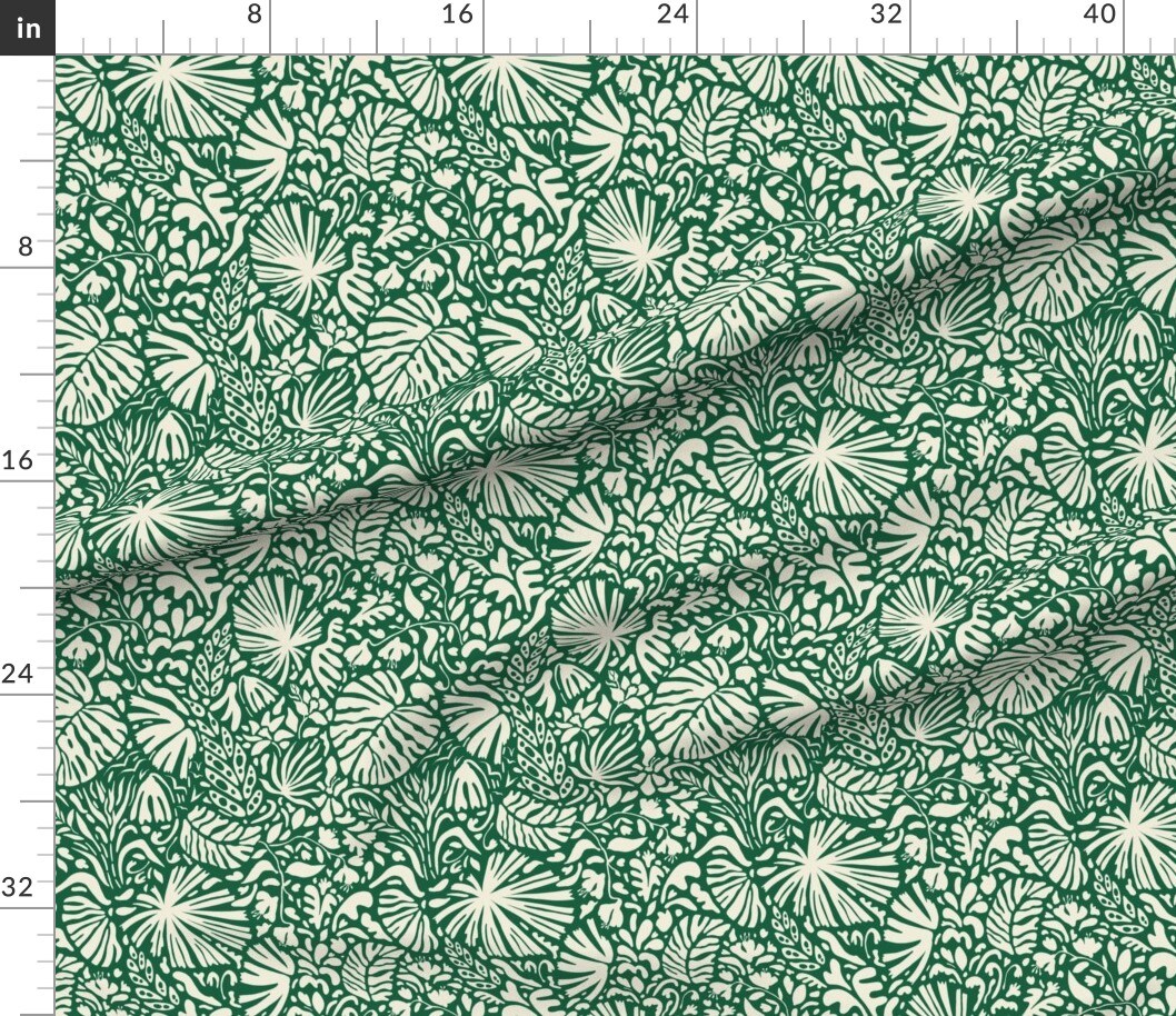Abstract Rainforest Green Botanical Tropical Leaves Flowers Custom Printed Fabric by Spoonflower Various Fabrics by the Yard or Fat Quarter