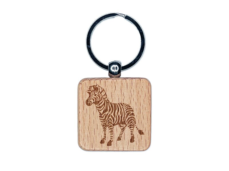 Abstract Striped Zebra Engraved Wood Square Keychain Tag Charm