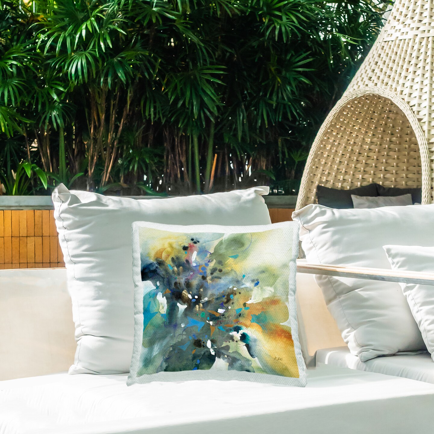 Abstract with Ink Droplets Outdoor Printed Pillow Design by K. Nari, 18 x 7 x 18