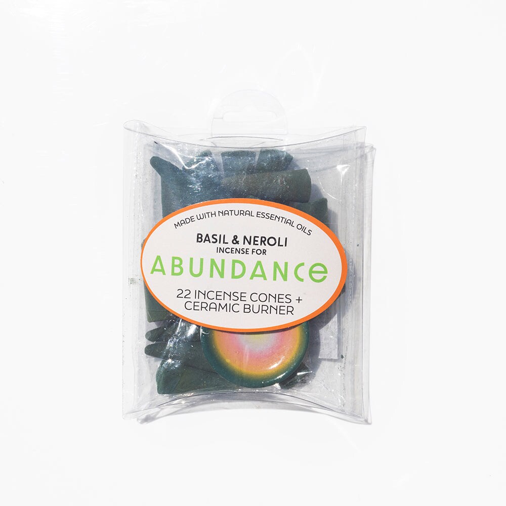 Abundance Basil & Neroli 22 Incense Cones and Ceramic Burner