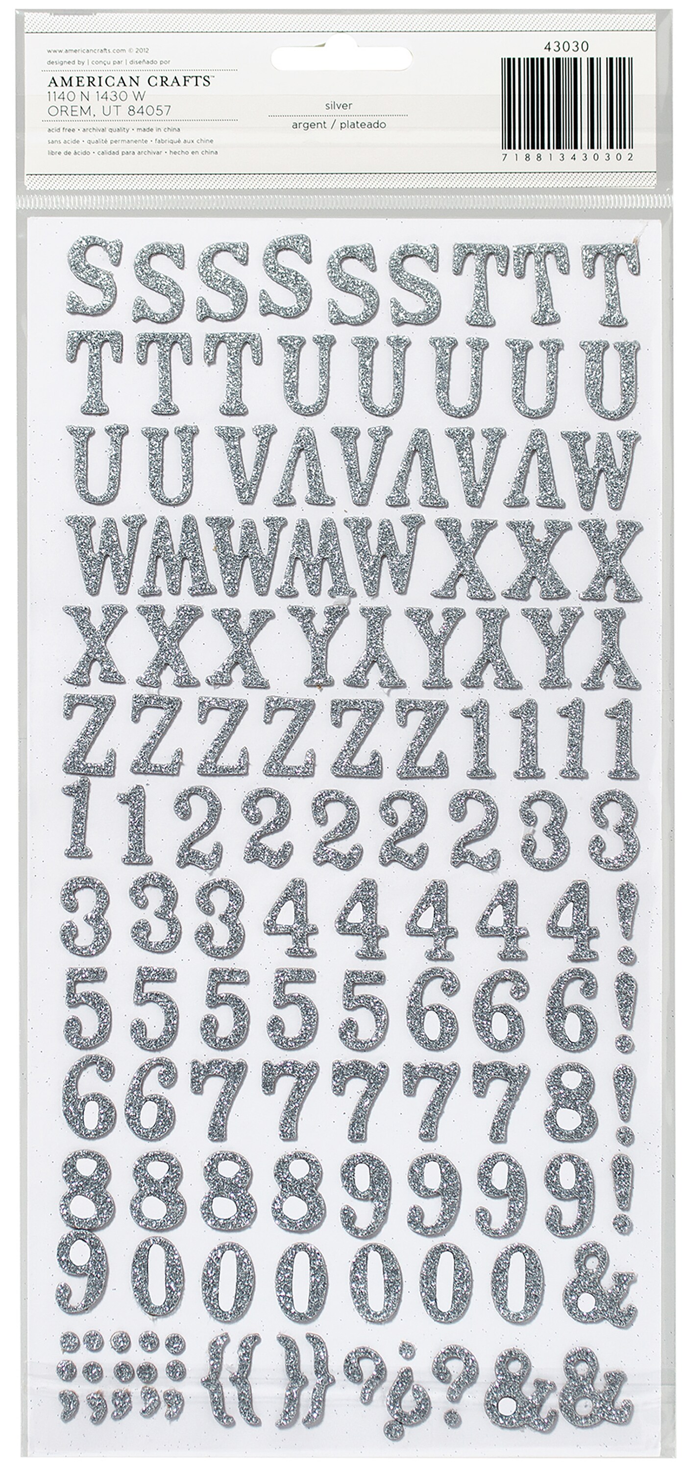 AC Chipboard Alphabet Stickers - Rockabye, Silver Glitter, 242pcs