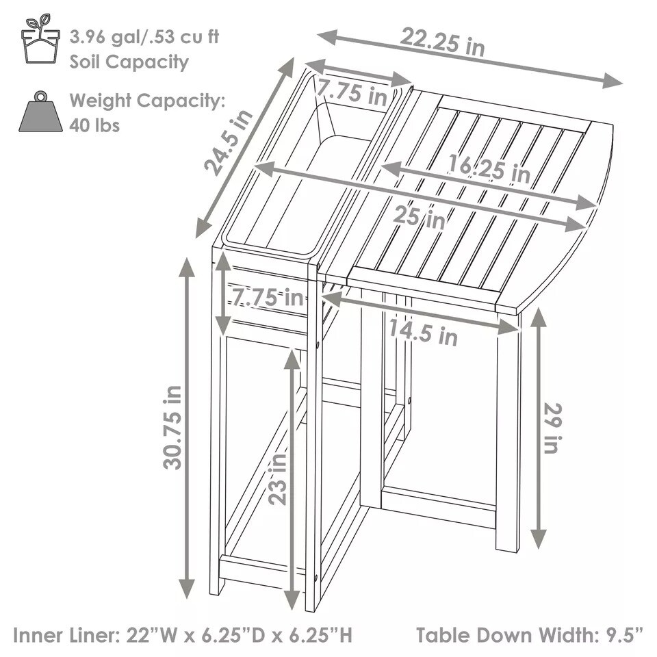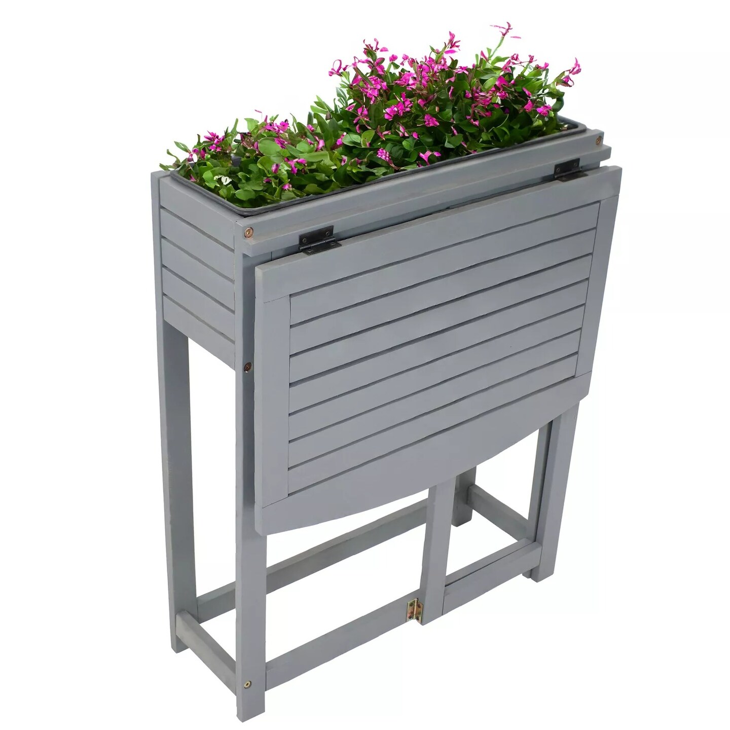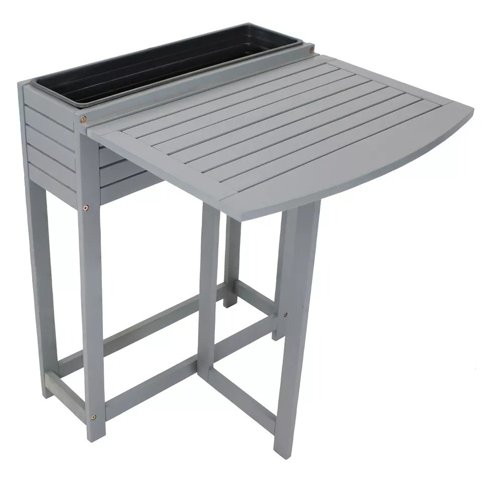 Acacia Wood Folding Table with Planter Box - 30.5" H - Gray