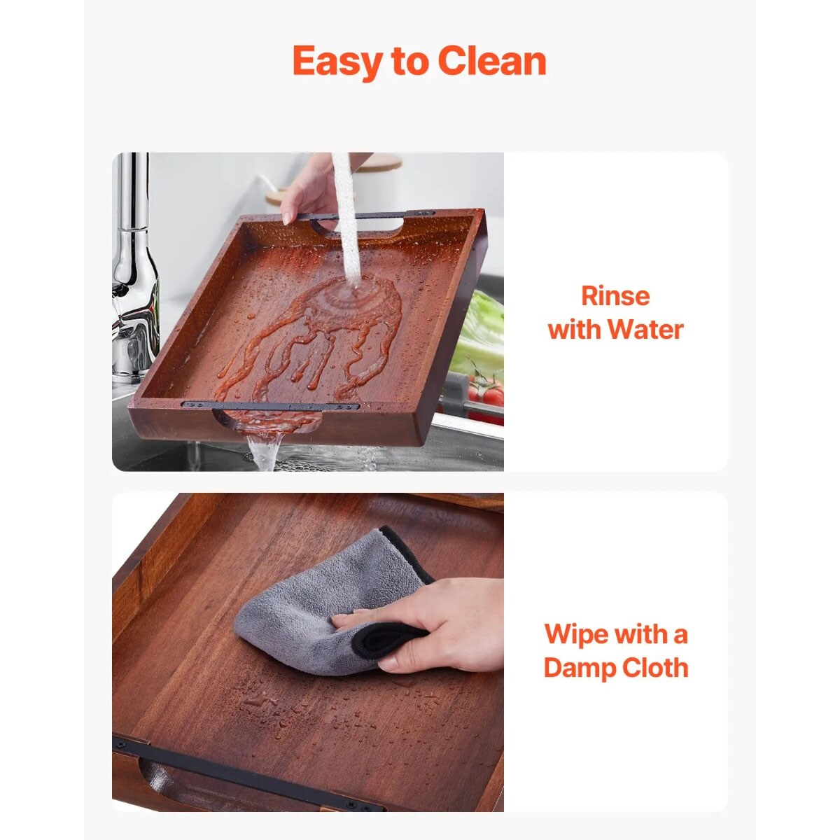 Acacia Wood Serving Tray with Metal Handles 17x12" Rustic Dark Walnut Kitchen & Coffee Table Organizer