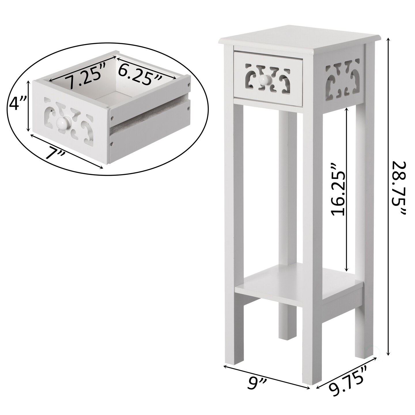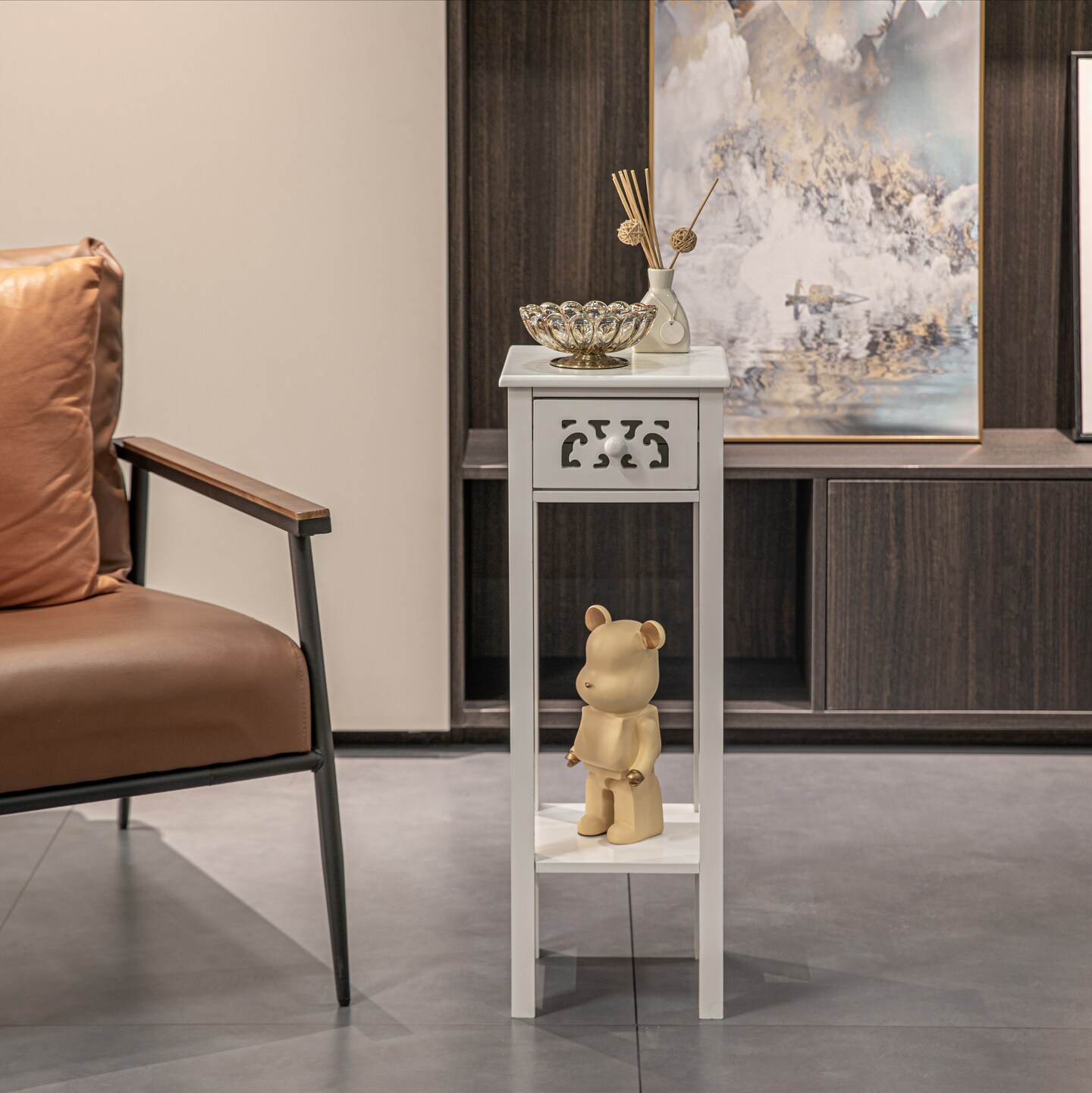 Acacia Wood Slim Bedside Table with Minimalist Design and Space-Saving Functionality, Wood Drawer and Open Shelf Side Table