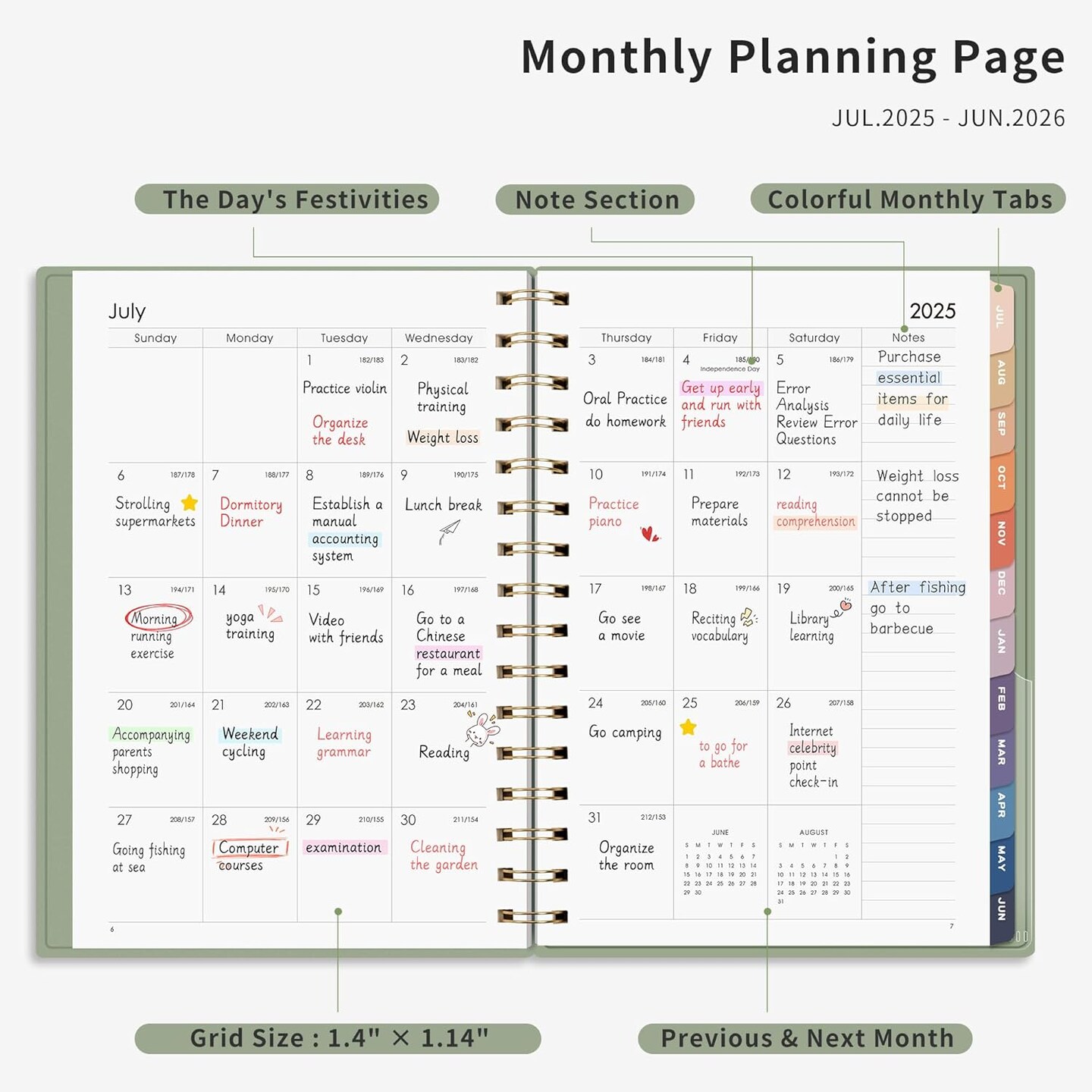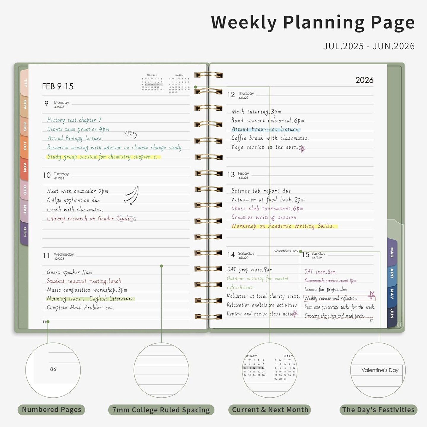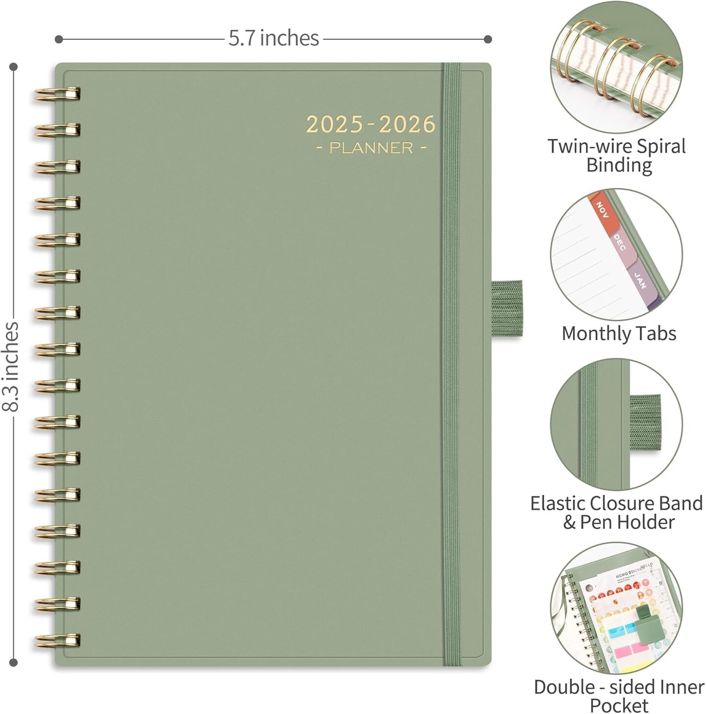 Academic Planner 2025-2026 - 5.7" x 8.3" (Light Green)