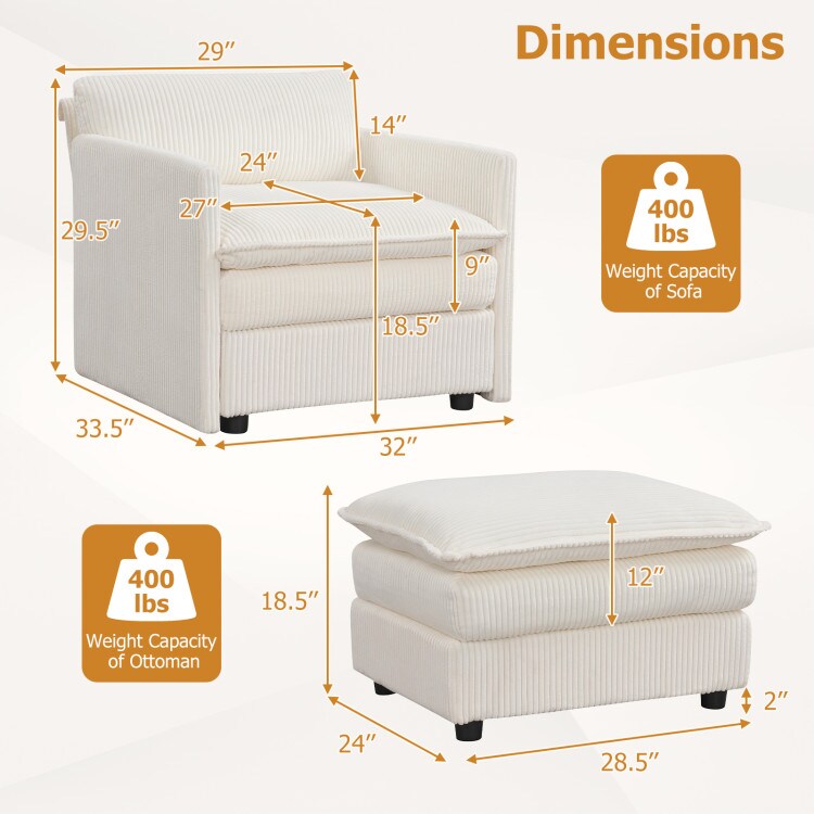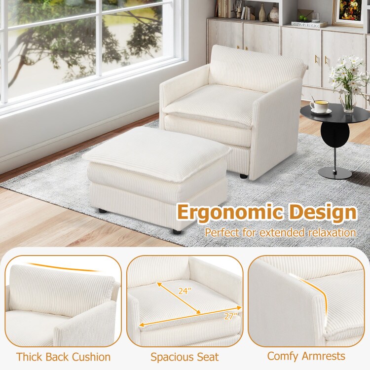 Accent Chair with Ottoman Oversized Design Soft Corduroy Cushions Comfortable