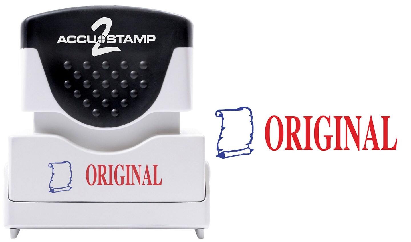 ACCUSTAMP2 Message Stamp, 2-color, Pre-inked, ORIGINAL, 1-5/8" x 1/2" impression size, Red Message with Blue Symbol