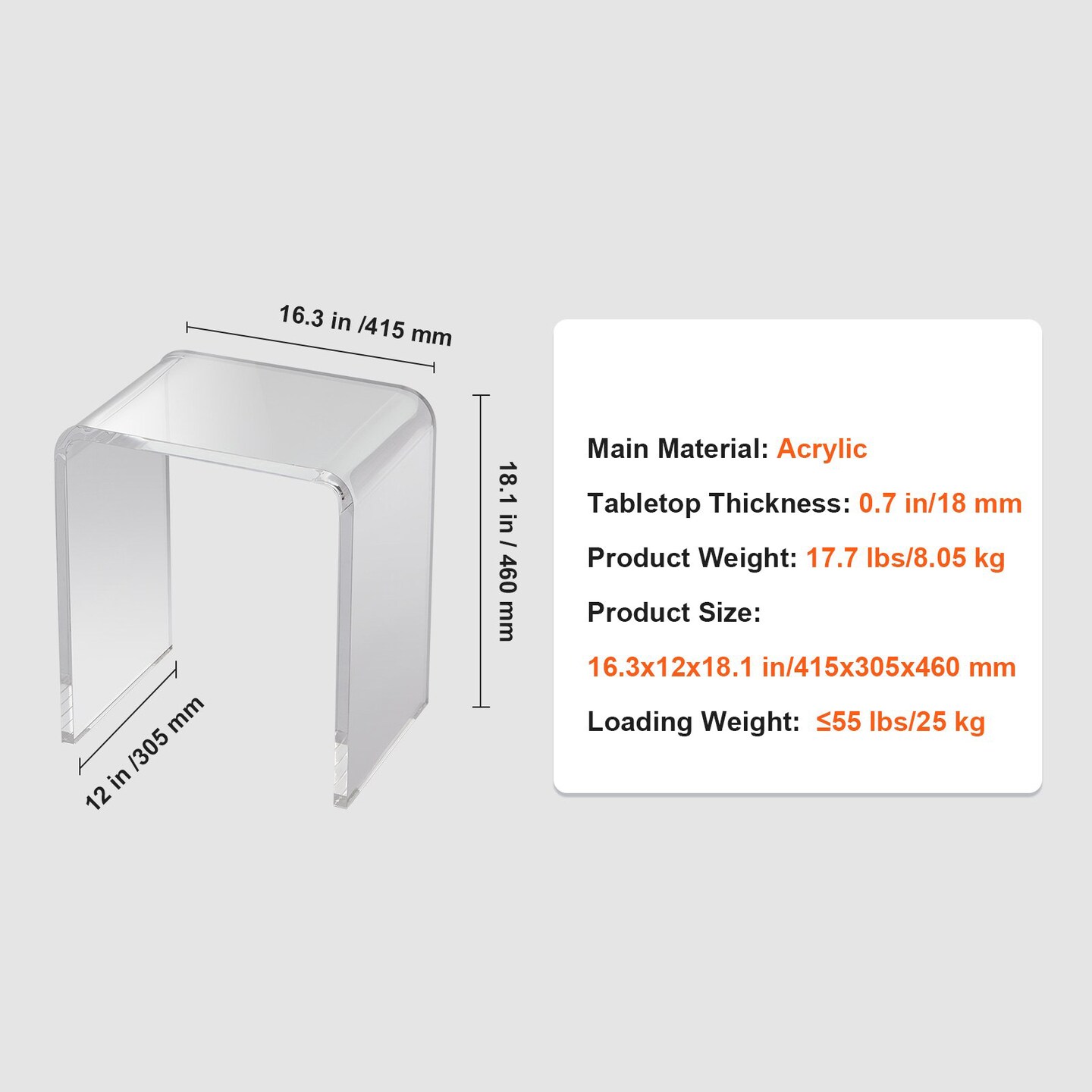 Acrylic End Table C-Shaped Lucite Side Table Clear for Living Room Bedroom Study