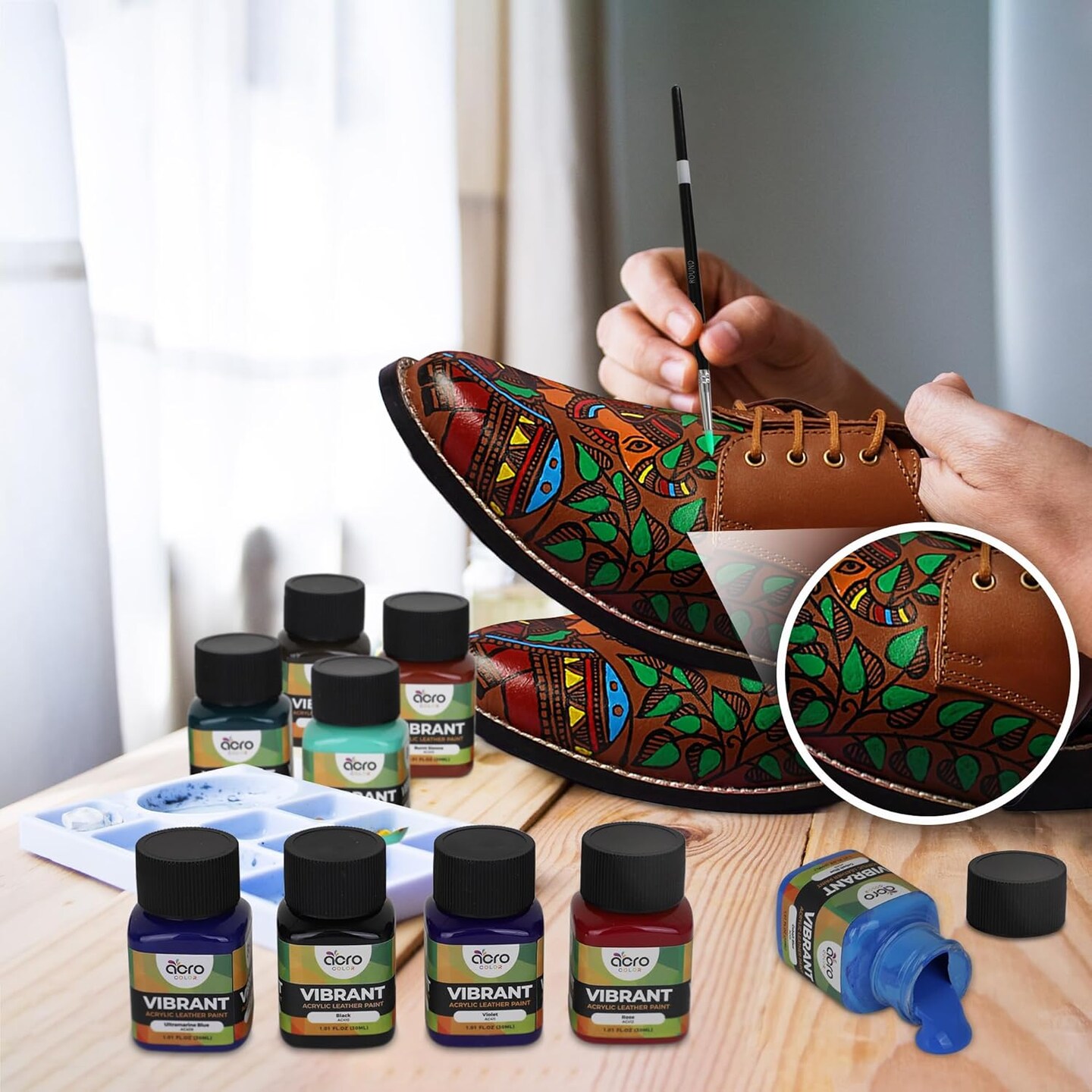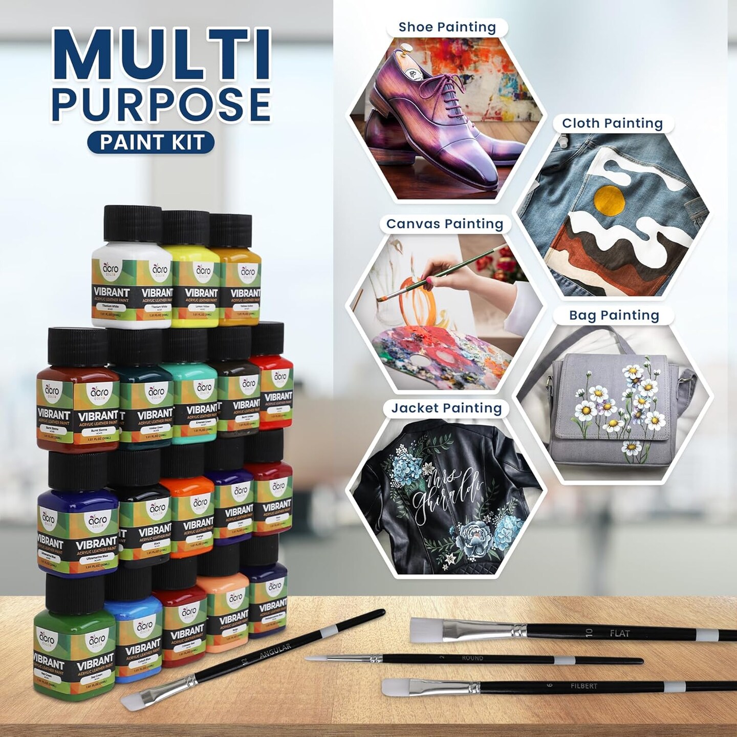 Acrylic Leather Paint - 18 Color with 5 Paint Brushes (Vibrant - 18 Colors)