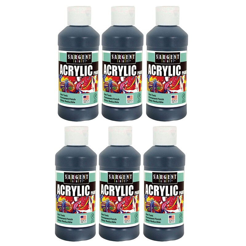 Acrylic Paint, 8 Oz., Black, Pack Of 6