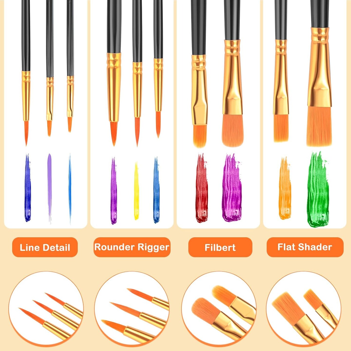 Acrylic Paint Brushes Set, 10 Packs/ 100 Pcs Watercolor Brushes,Nylon Brush Head, for Oil Painting, Gouache, Face,Ceramics etc, Kid's and Adults Painting Arts and Crafts Paint Sets.