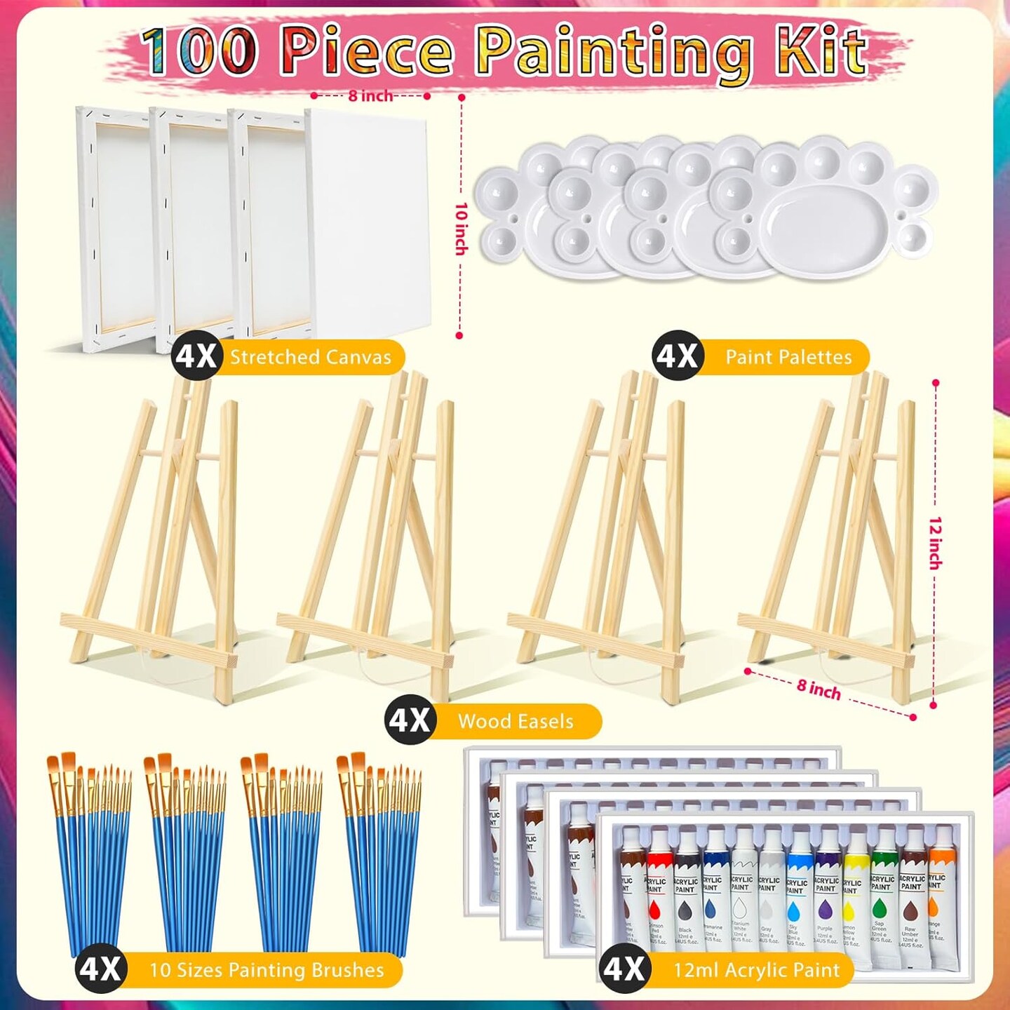 Acrylic Paint Set 100 Pcs Acrylic Painting Kit with 4 * 12 Colors Paint,4 Sets(40 Brushes)