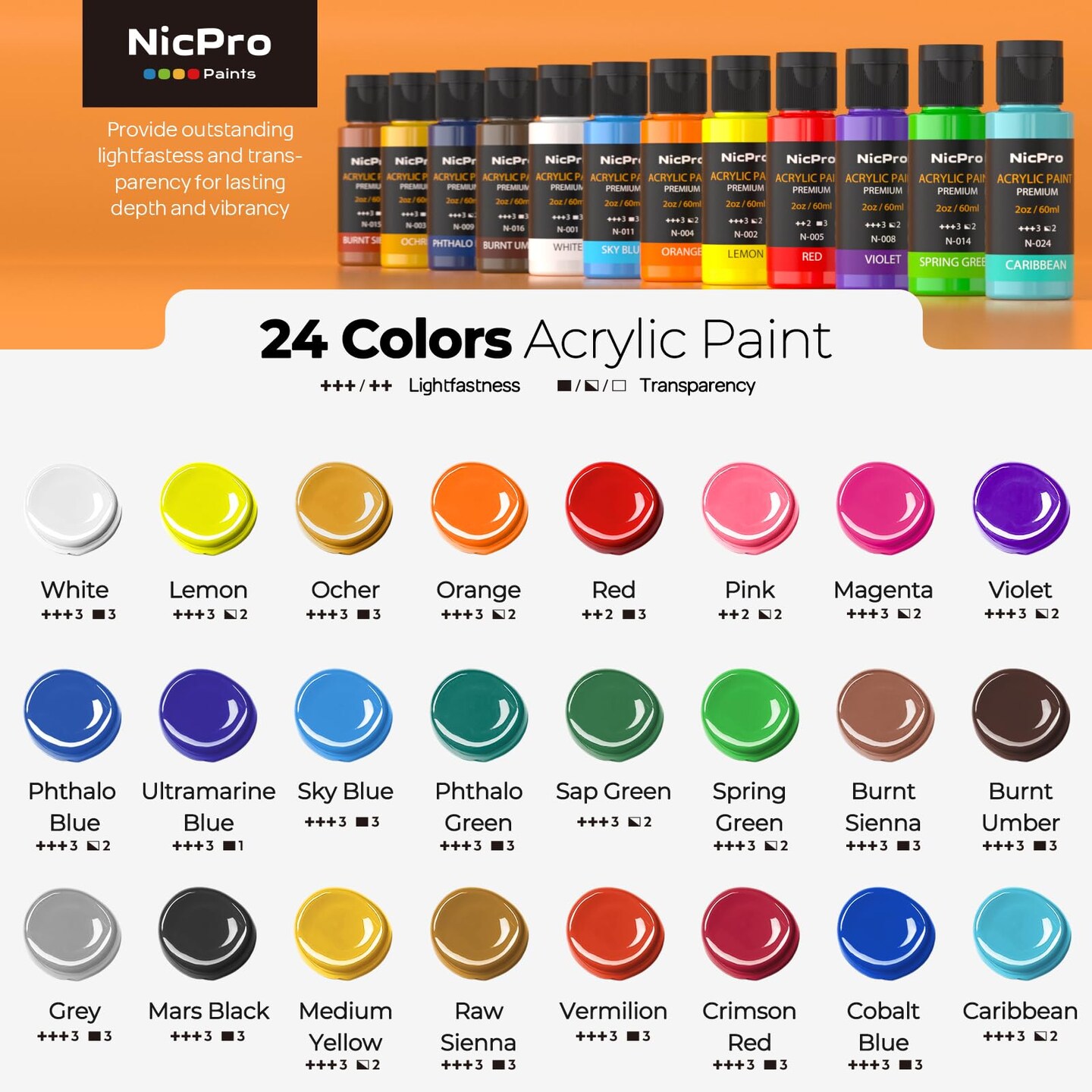 Acrylic Paint Set, 24 Colors with 12 Brushes & Palette, Non Toxic Art Supplies Kit for Painting Fabric, Canvas, Clay, Wood, Rock & Ceramic, Easter Egg, Rich Pigments for Beginners, Students & Professional Artists (2 oz, 60 ml)