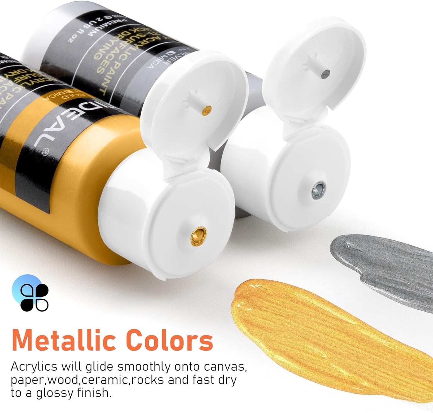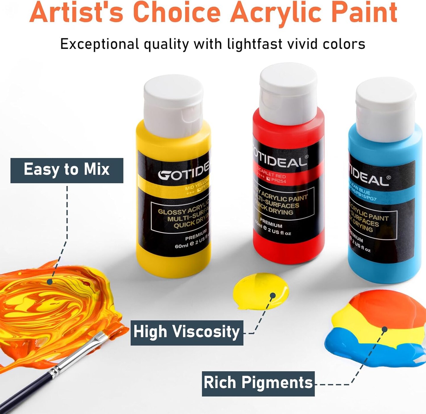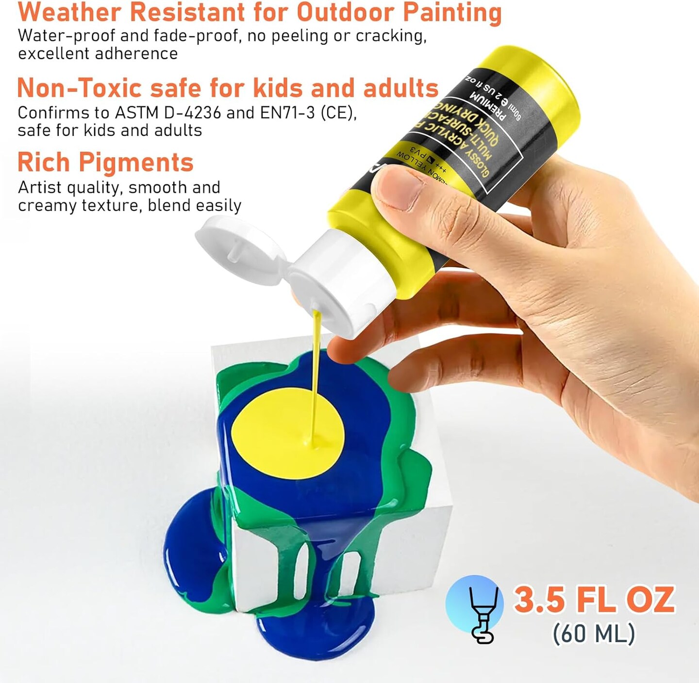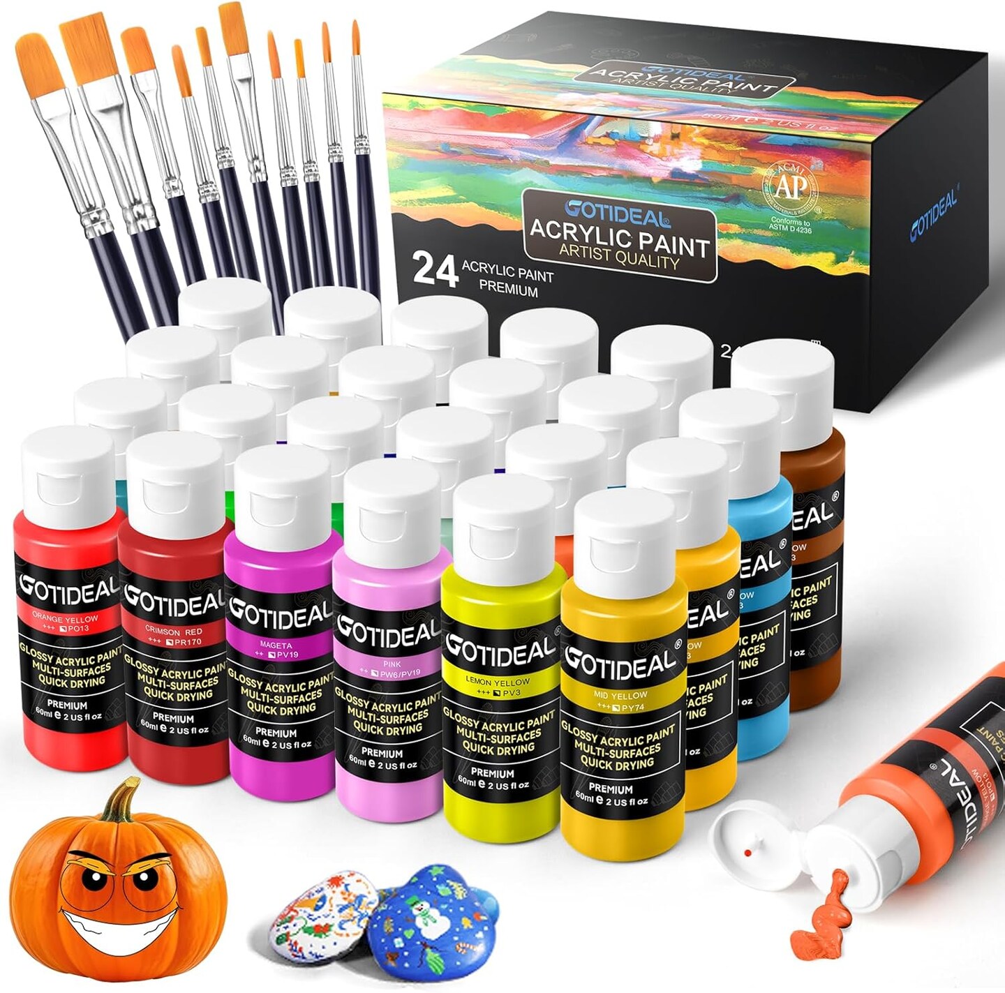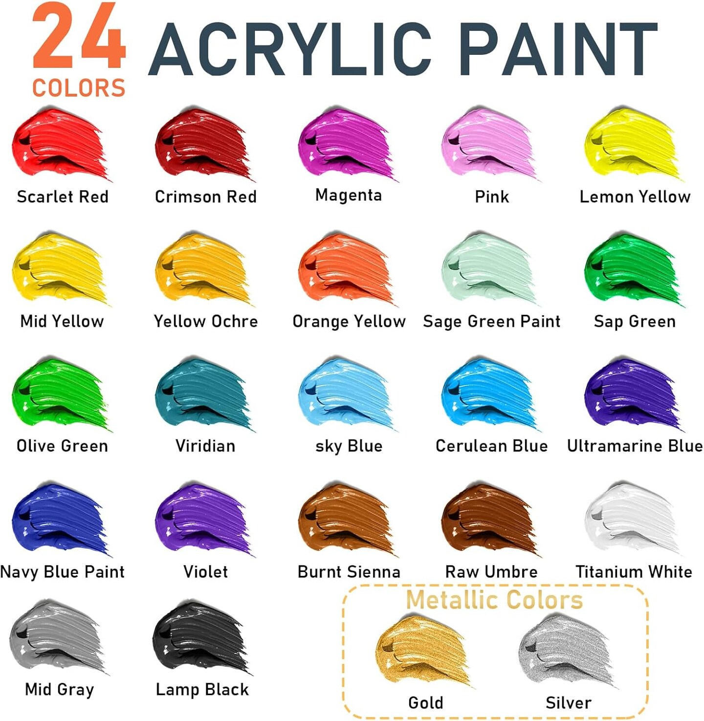 Acrylic Paint Set with Paint Brushes, 24 Colors(59ml, 2 oz) Art Craft Paint for Adults and Kids, Perfect for Artist, Beginner, Ideal for Wood, Canvas, Rocks, Outdoor Painting Supplies