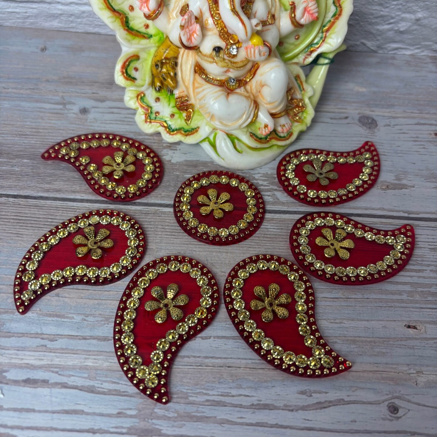 Acrylic Rangoli Set Indian Traditional Handmade Reusable Paisley Design Rangoli Diwali Navratri Home Temple Decor Floor Table Decoration - Deepawali Wedding Housewarming Gift (6.5 Inches)