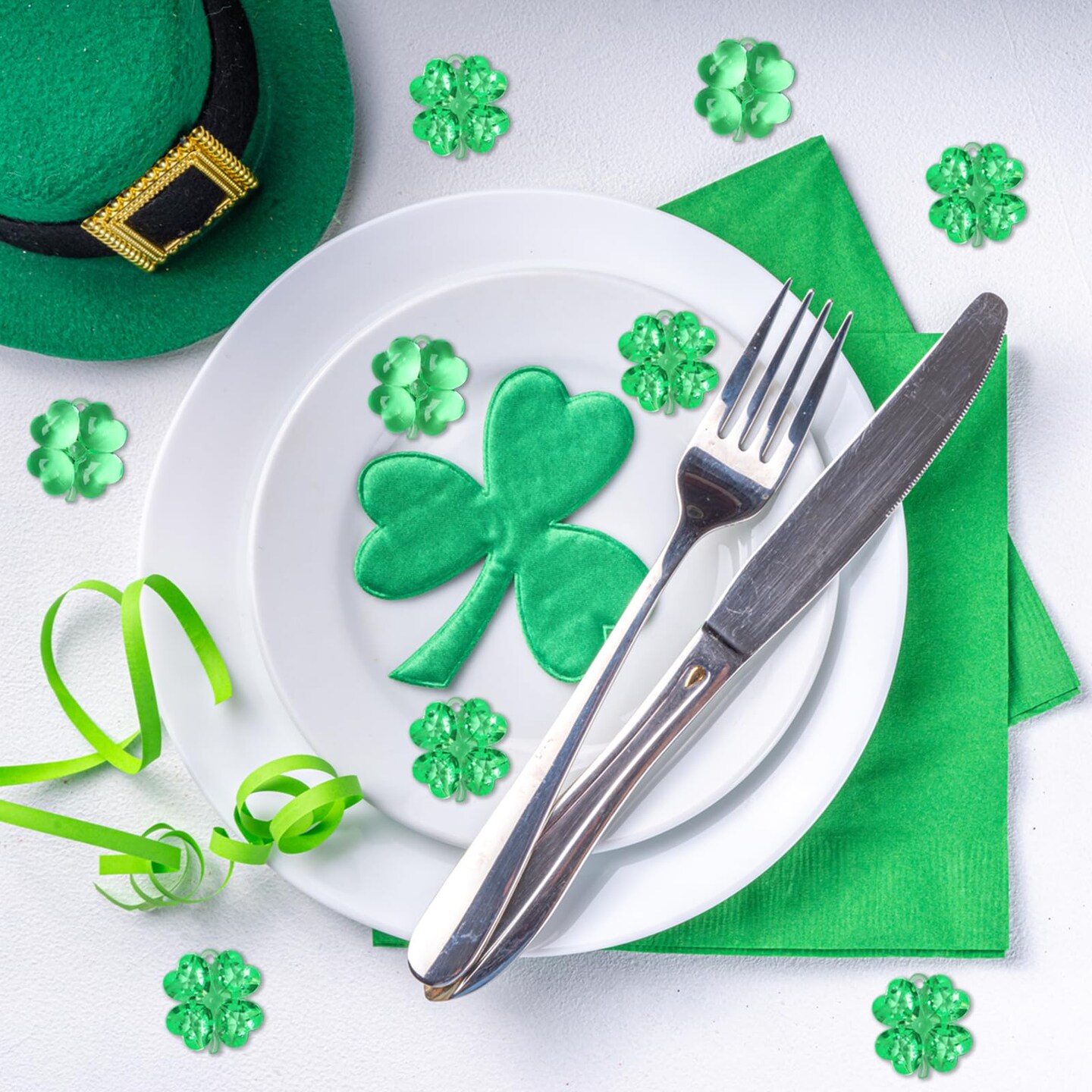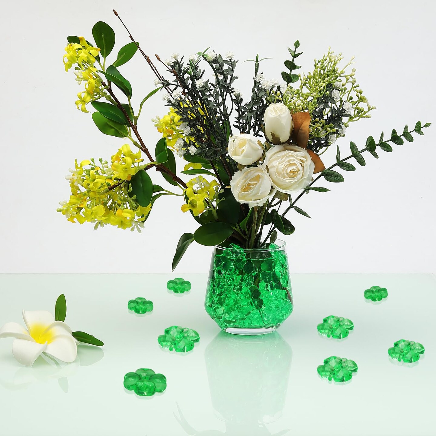 Acrylic Shamrocks St Patricks Day Decorations, 65pcs Mini Green Clear Crystal Clover Vase Filler Ornaments for Table Centerpieces DIY Crafts