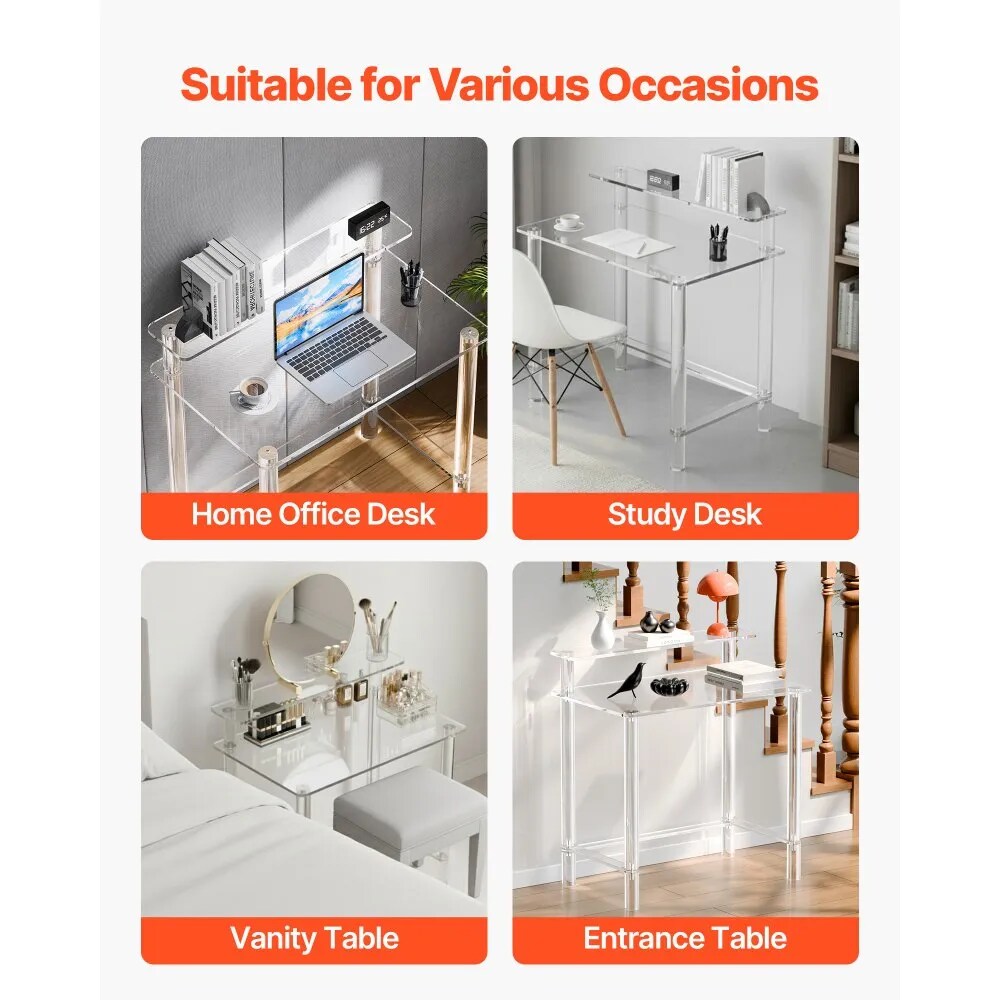 Acrylic Table 2 Tiers Clear Office Desk with Monitor Stand Modern Study Computer Desk
