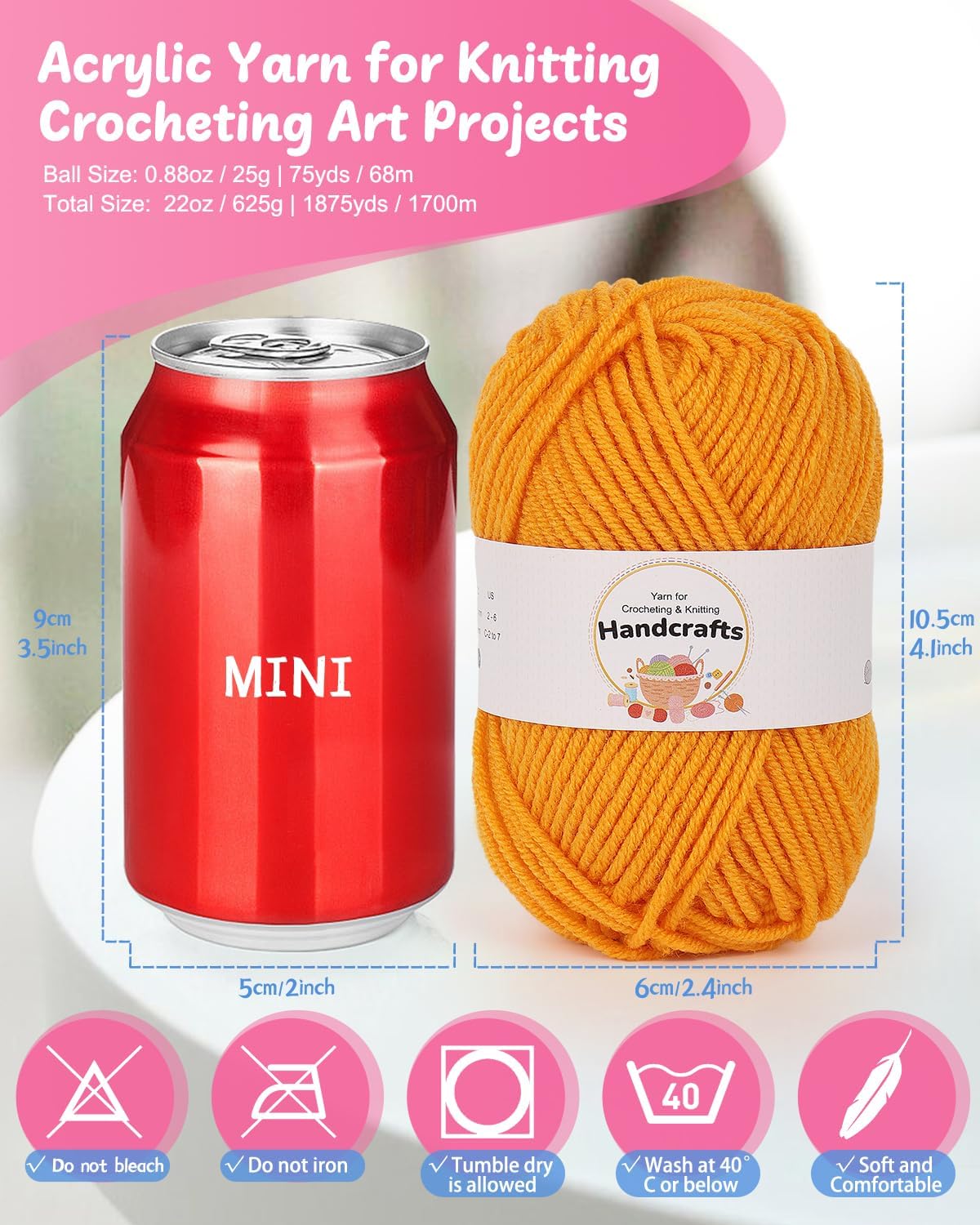 Acrylic Yarn for Crocheting Knitting - 25 Colors