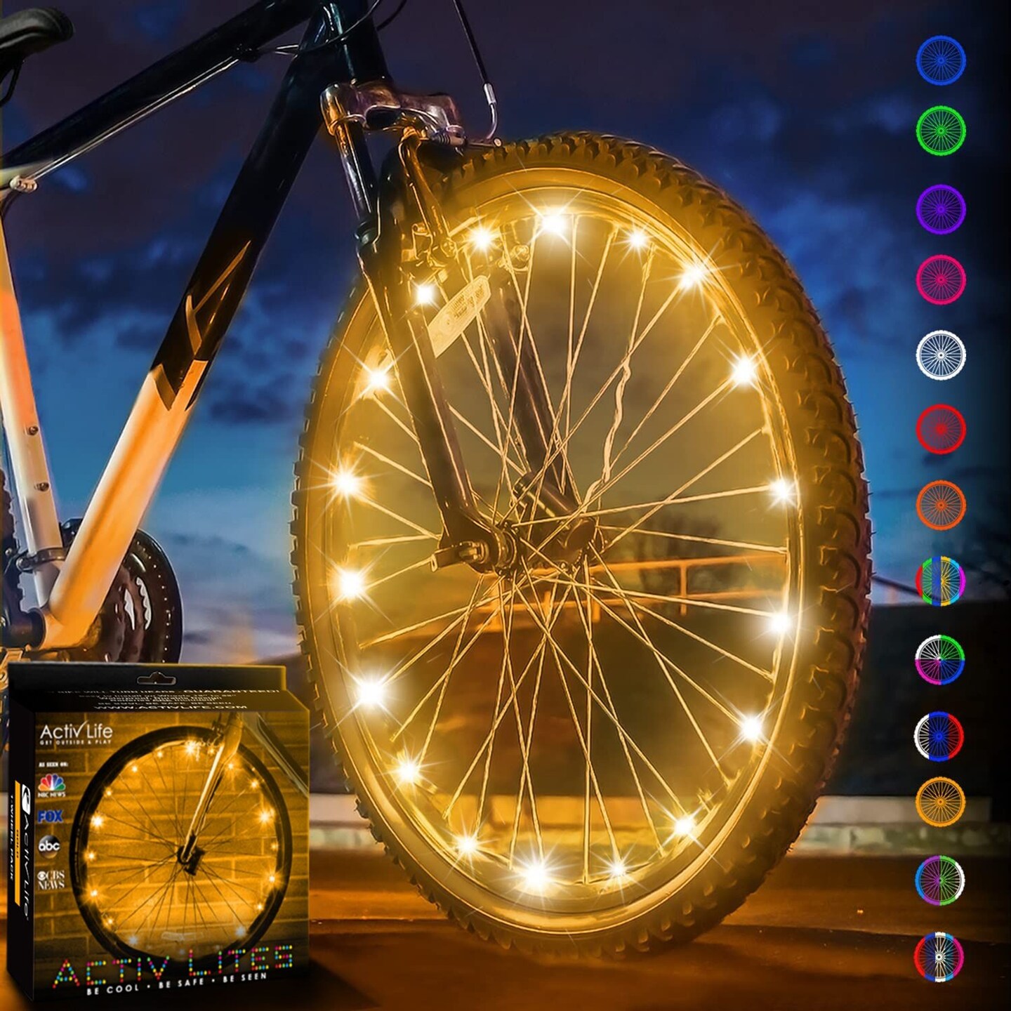 Activ Life LED Bike Wheel Lights with Batteries Included, Get 100% Brighter and Visible from All Angles for Ultimate Safety & Style (1 Tire Pack, Gold)