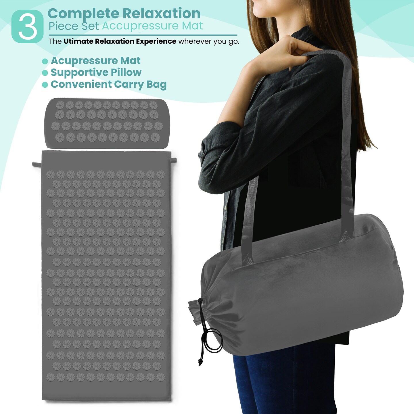 Acupressure Mat and Pillow Set - Grounding Mat for Stress, Back & Neck Pain, Muscle Relaxation, Sciatica, & Meditation - Includes Carry Bag
