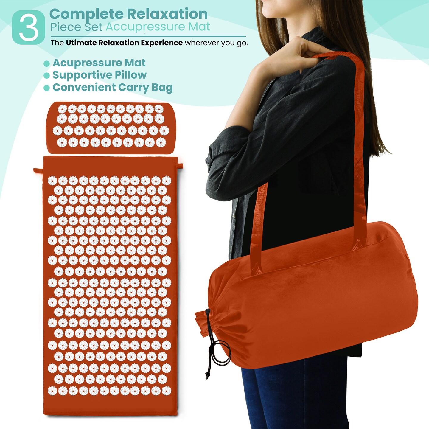 Acupressure Mat and Pillow Set - Grounding Mat for Stress, Back & Neck Pain, Muscle Relaxation, Sciatica, & Meditation - Includes Carry Bag
