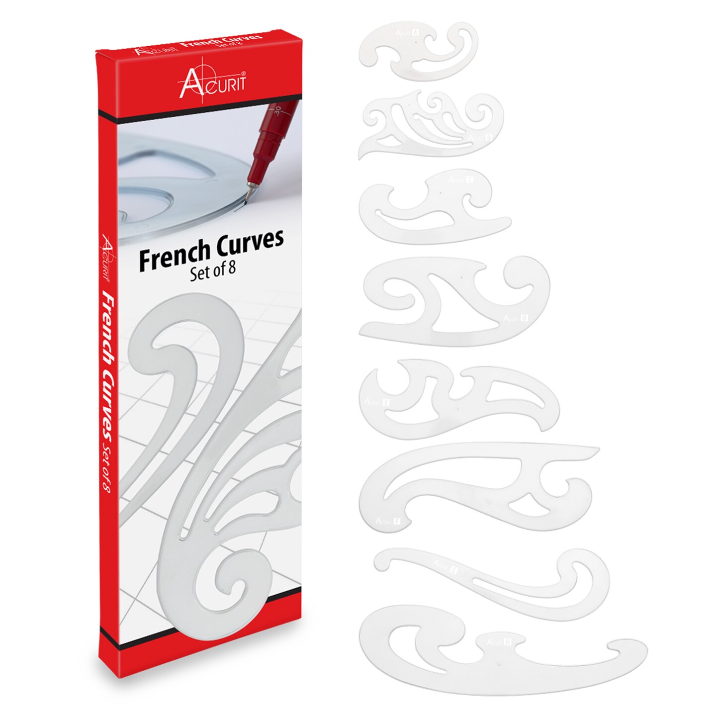 Acurit French Curve Set of 8 – Clear Plastic Drawing Templates for Sewing, Pattern Making, Drafting, Fashion Design, Architecture, Graphic Illustration – Smudge-Free Inking Edges