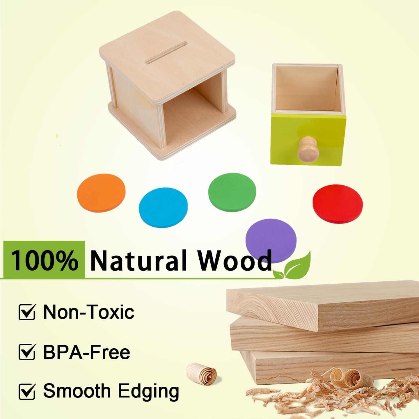 Adena Montessori Coin Box,Object Permanence Box Toys for 1 Year Old Baby Coins,Wooden Montessori Ball Drop Toys Developmental Toys for 6-12 Month Infant Toys,Learning Kids Gifts(Yellow-Green Door)