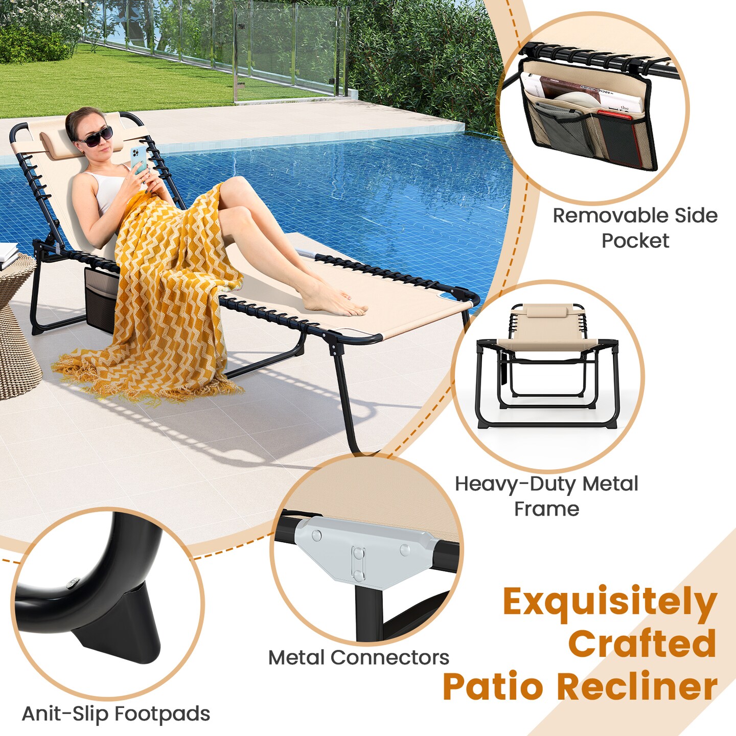 Adjustable 4-Position Folding Lounge Chaise with Backrest and Footrest