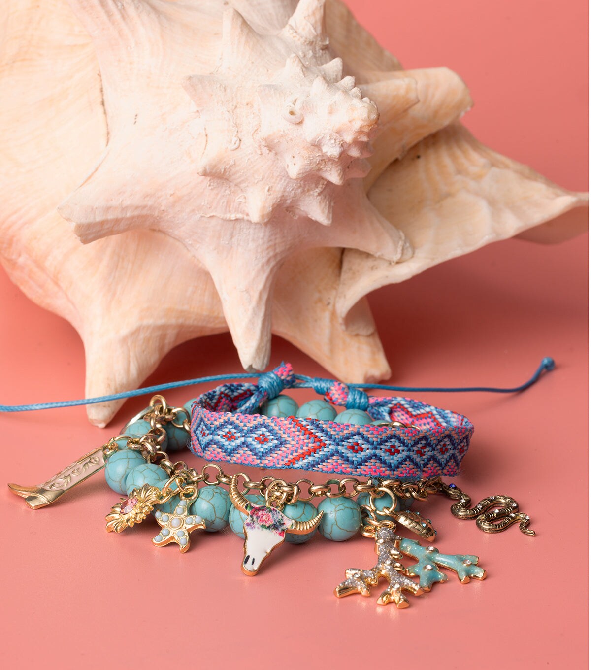 Adjustable Blue Pink and Red Woven Macrame Southwestern Style Festival Bracelet Coastal Cowgirl