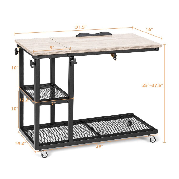 Adjustable C-Shaped Bedside Table with Wheels-Natural