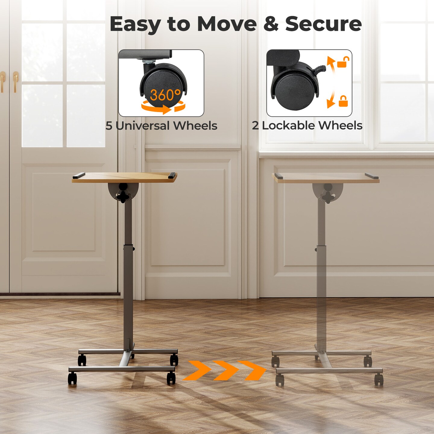 Adjustable Rolling Laptop Table for Bed, Sofa, or Office Use