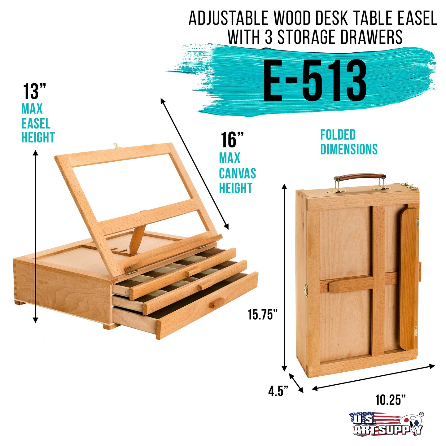 Adjustable Wooden Art Easel: Portable Tabletop Easel with Storage 3-Drawers & Paint Palette - Beechwood Table Top Easels for Painting, Canvas, Artist Stand & Drawing Board