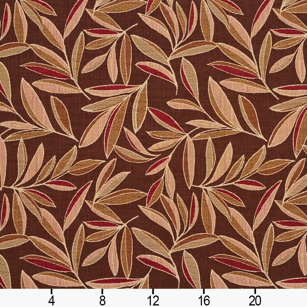 Adobe - Brown,Red & Burgundy Leaves Upholstery Fabric 54 Inches"