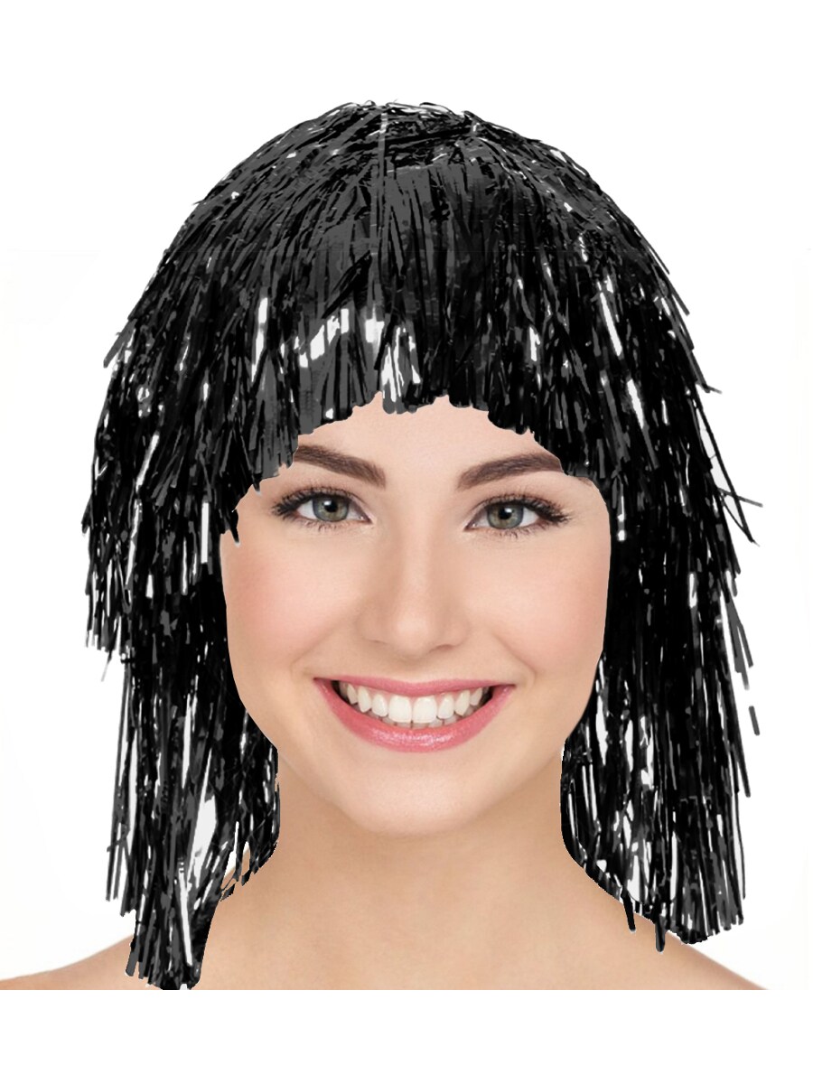 Adult's Black Tinsel Party Wig Costume Accessory