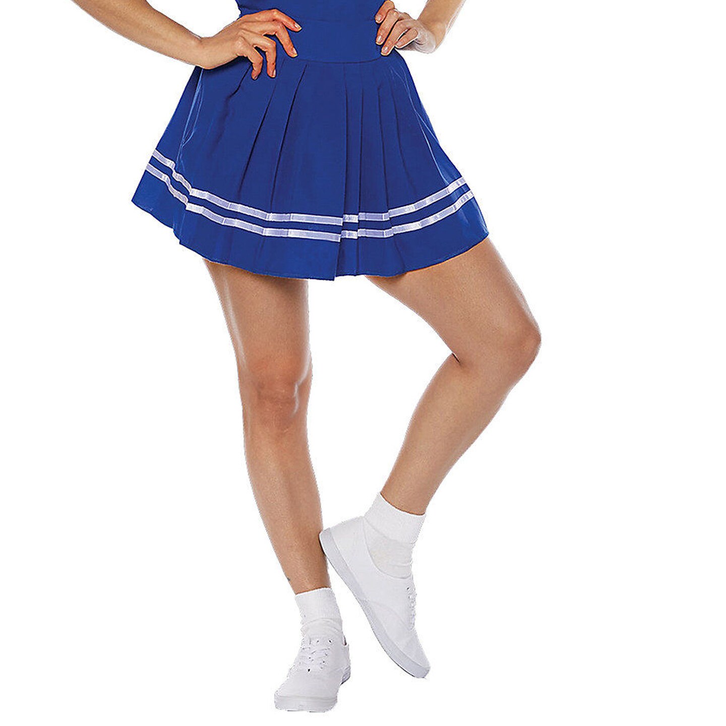 Adult Cheerleader Costume Blue Top Thigh High Pleated Skirt