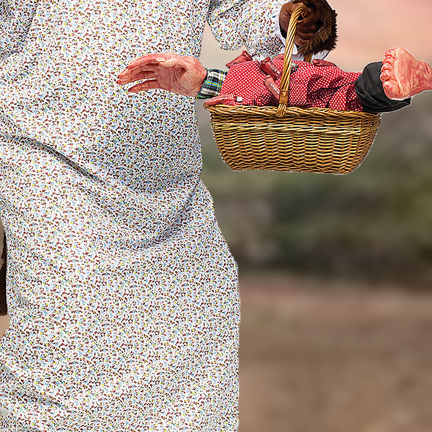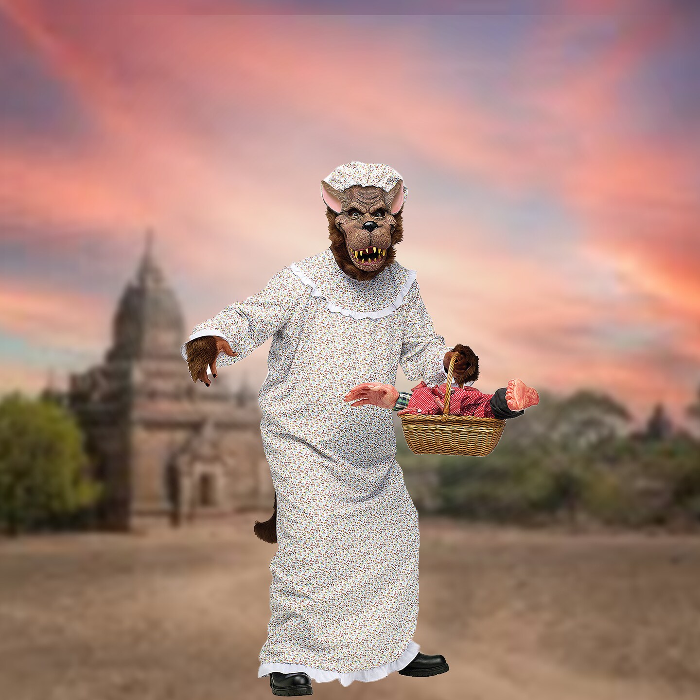 Adult Granny Wolf Costume Nightgown Tail Plush Sleeves And Wolf Mask