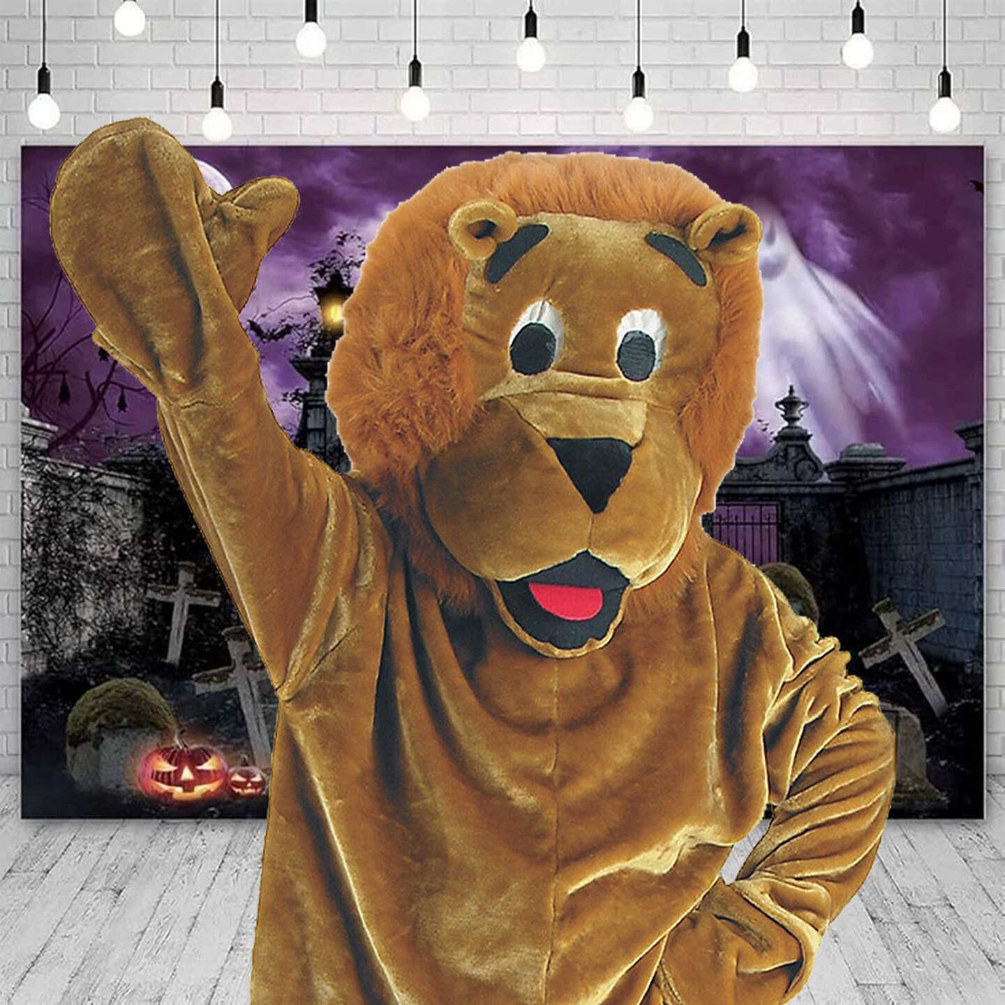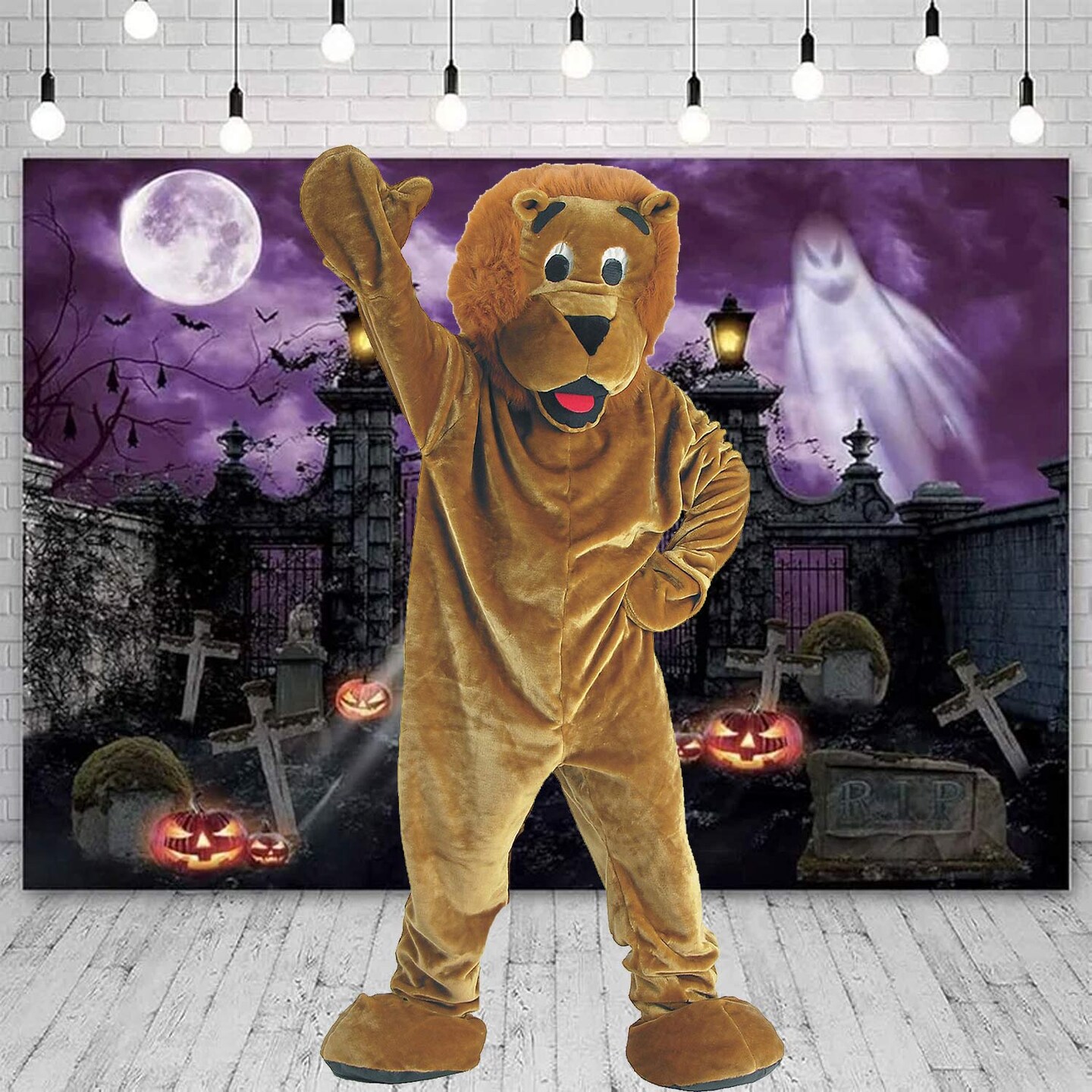 Adult Lion Mascot Costume Jumpsuit with Mitts Fur Mane Head and Oversized Feet