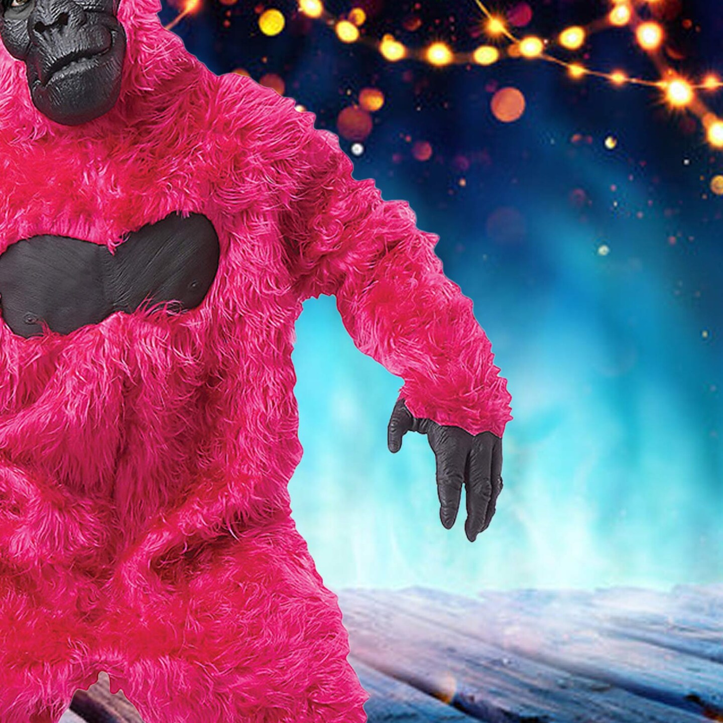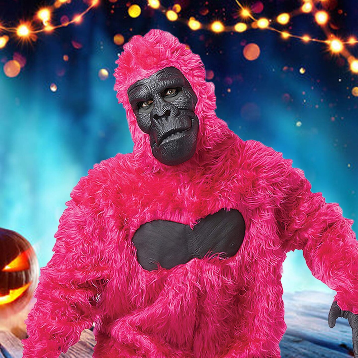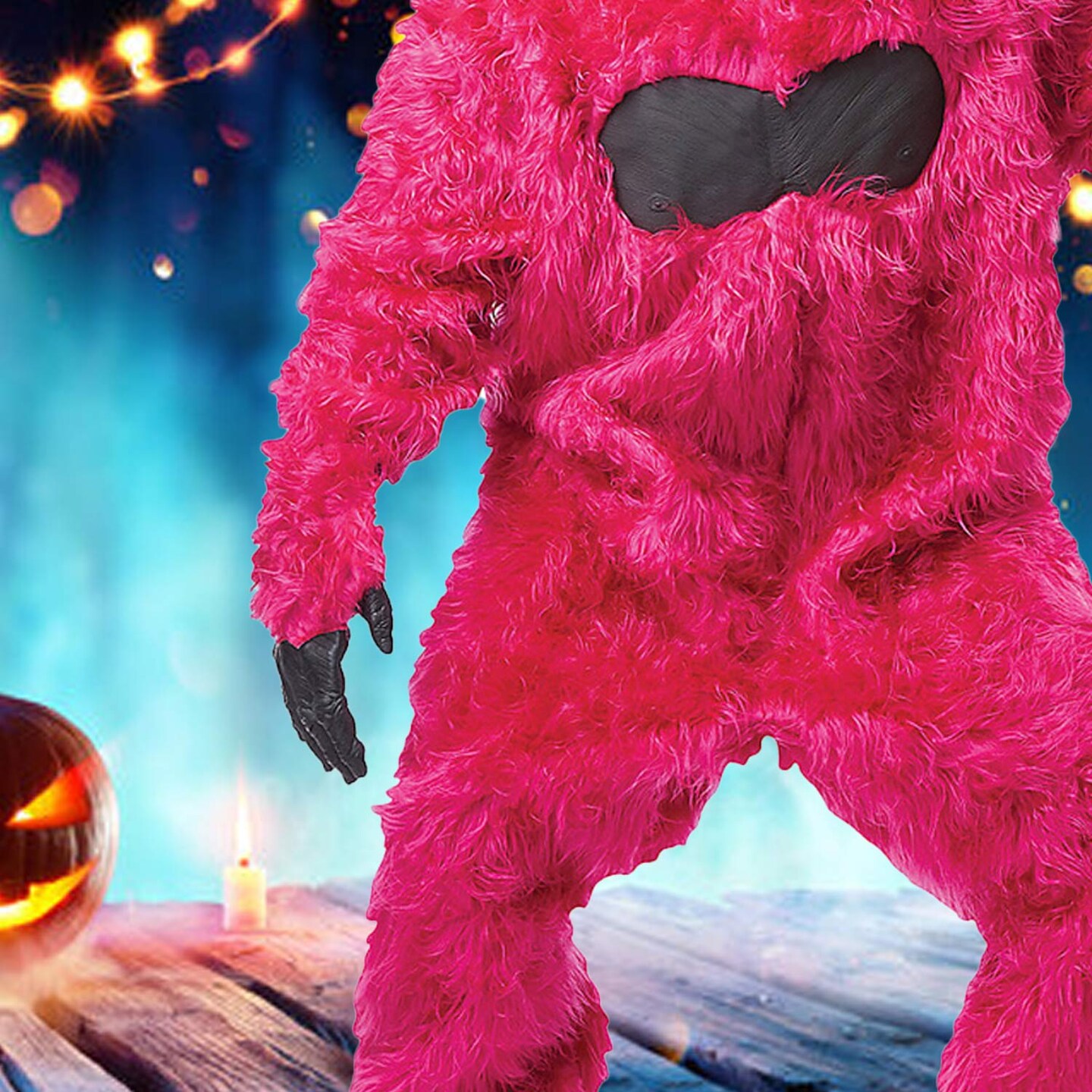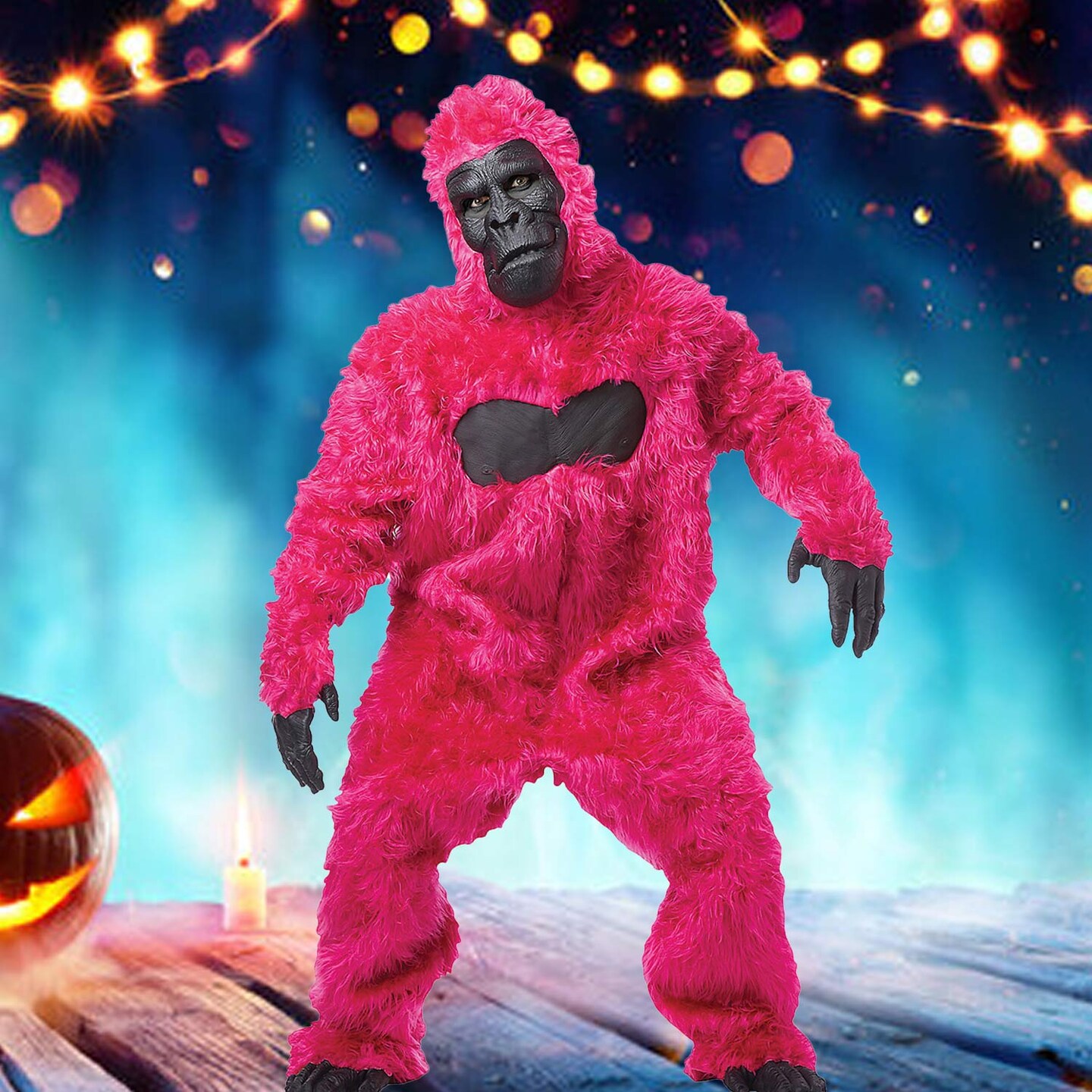 Adult Pink Gorilla Costume with Fur Bodysuit Mask Hands and Feet