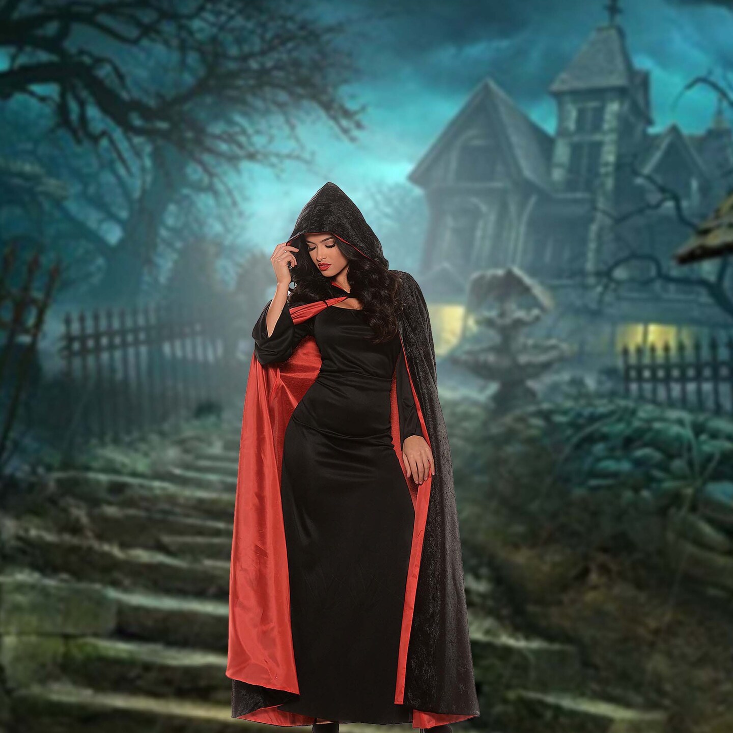 Adults Hooded Velvet Cape Red Lining Halloween Vampire Sorceress Outfit