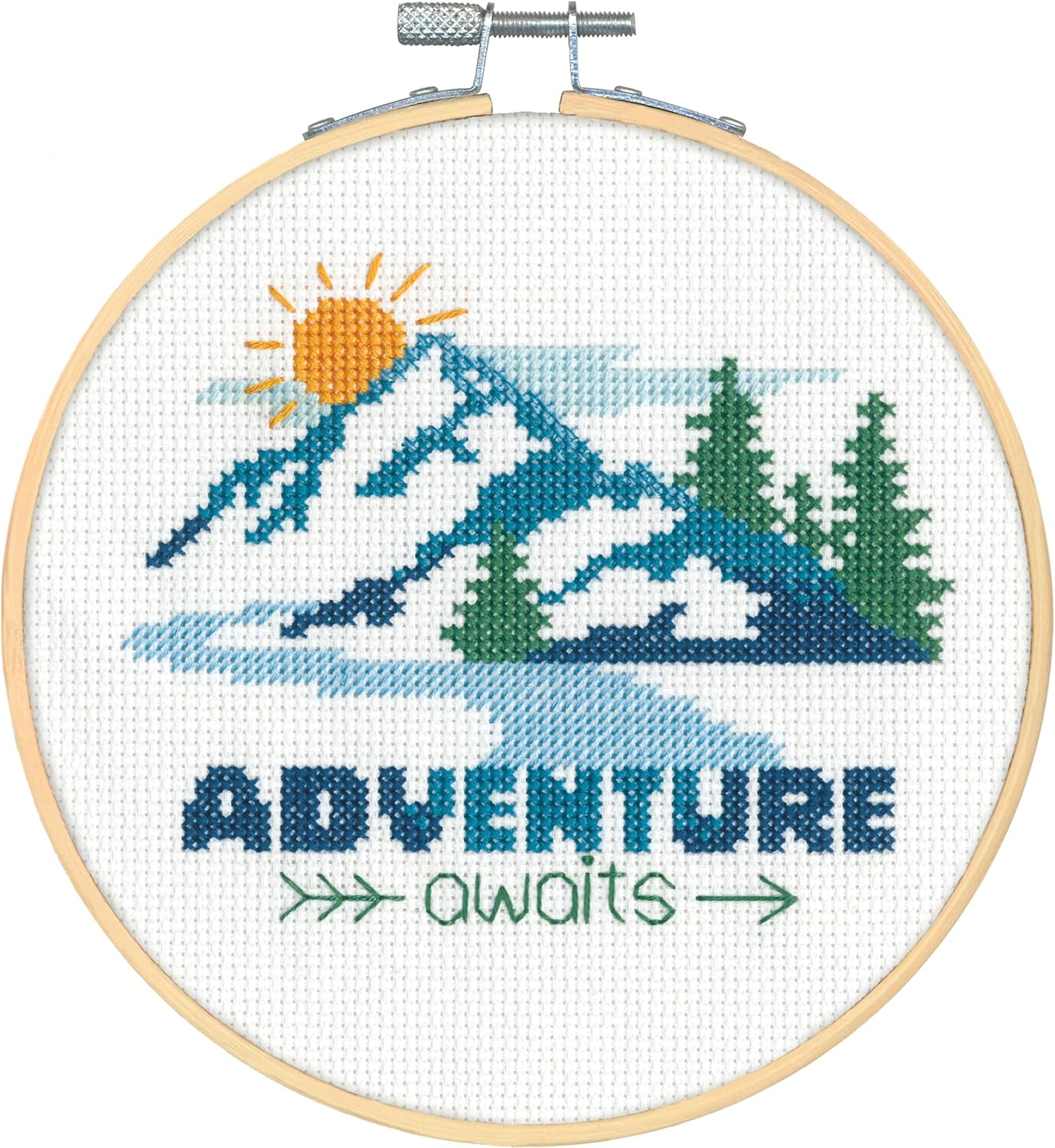 Adventure Awaits Counted Cross Stitch Kit – 6" Mountain Landscape Design with 14CT Aida, Bamboo Hoop, Threads & Needle, Beginner-Friendly DIY Embroidery, 5 Pieces