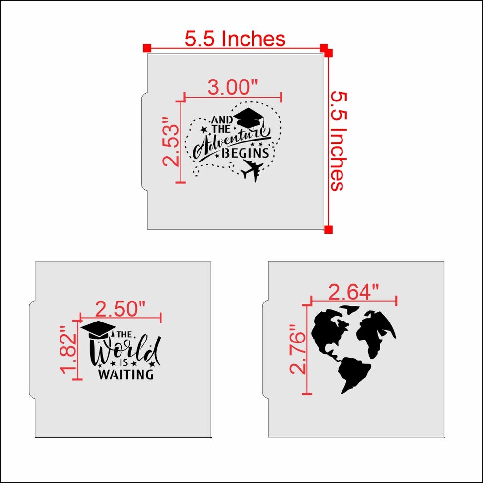 Adventure Graduation 6 Piece Cookie Stencil Set