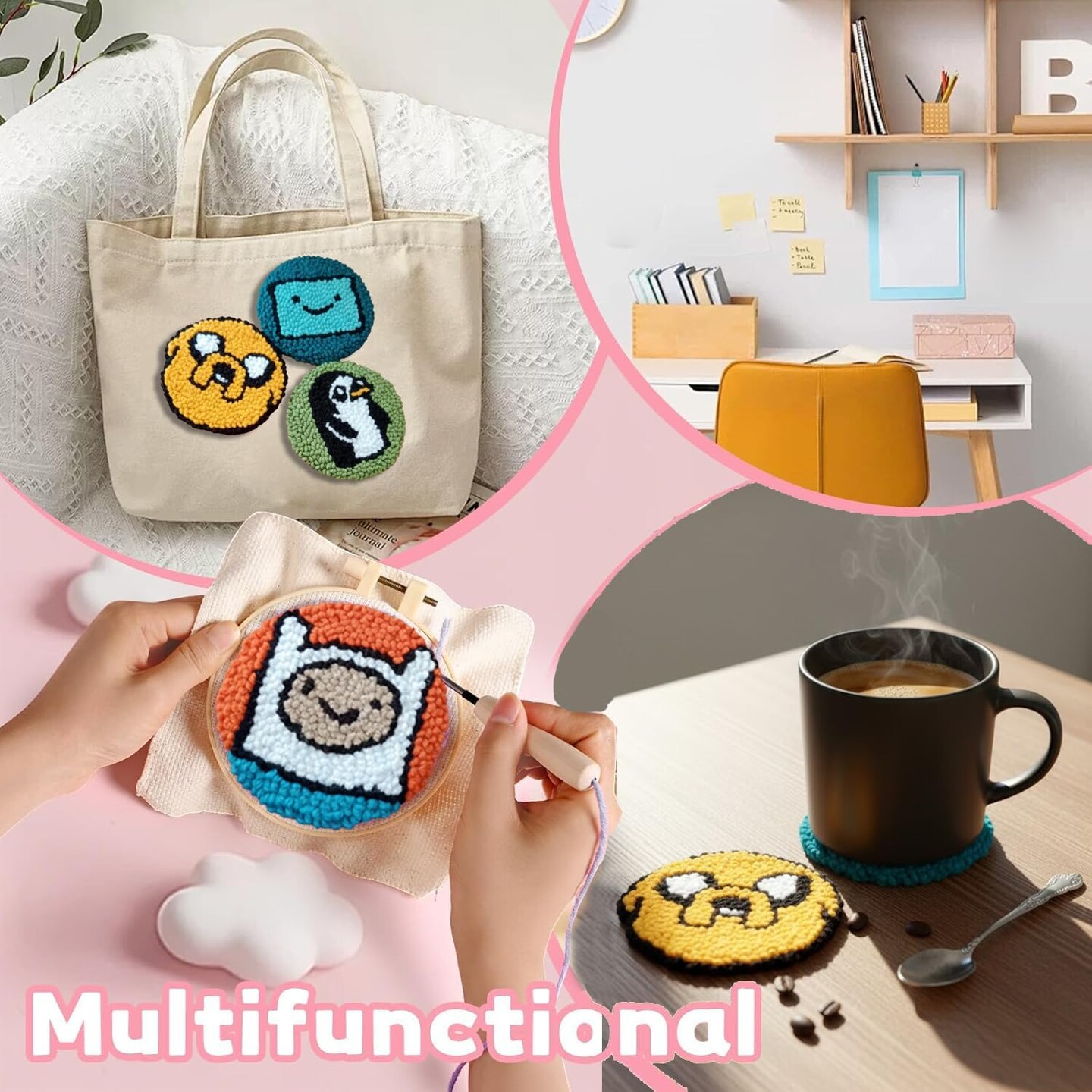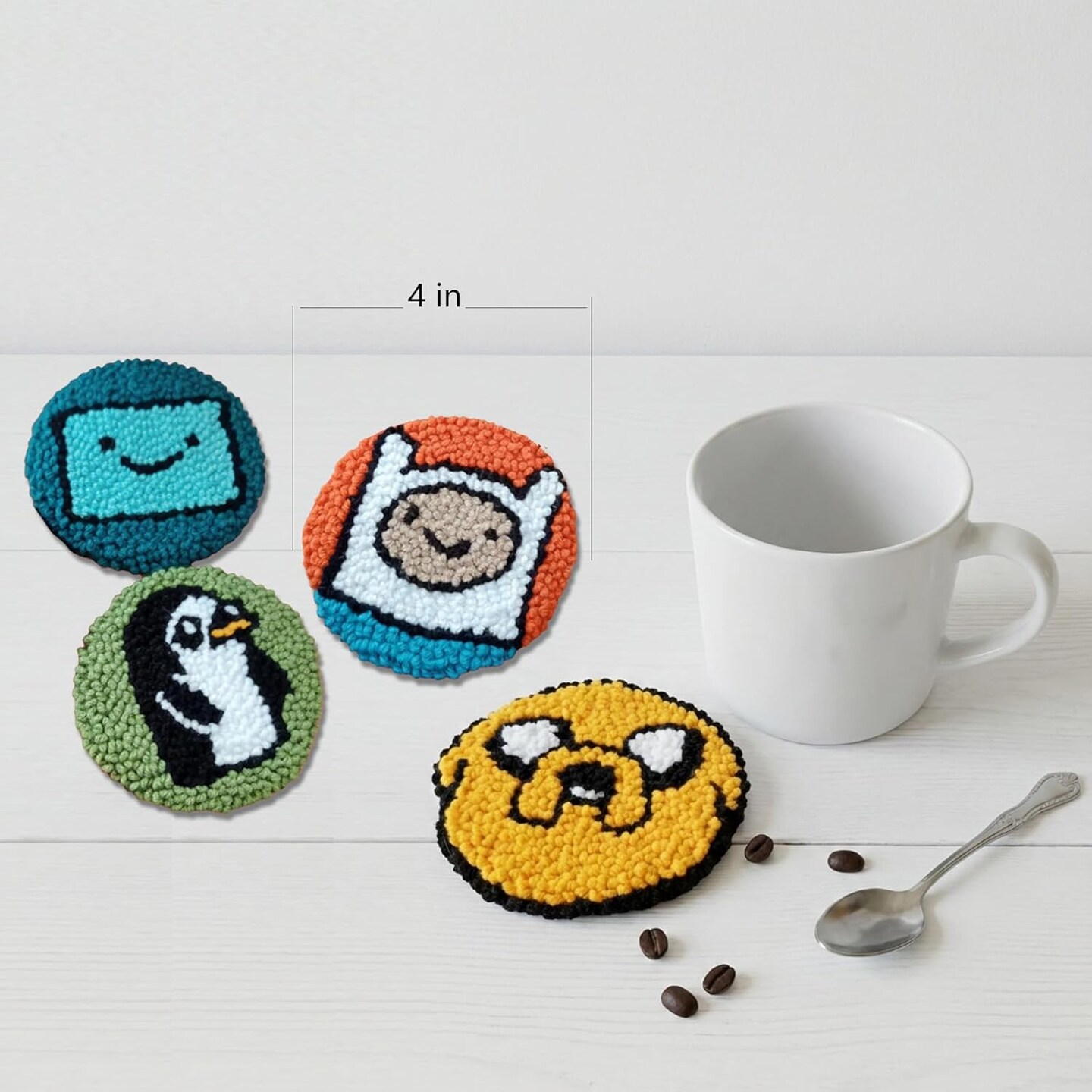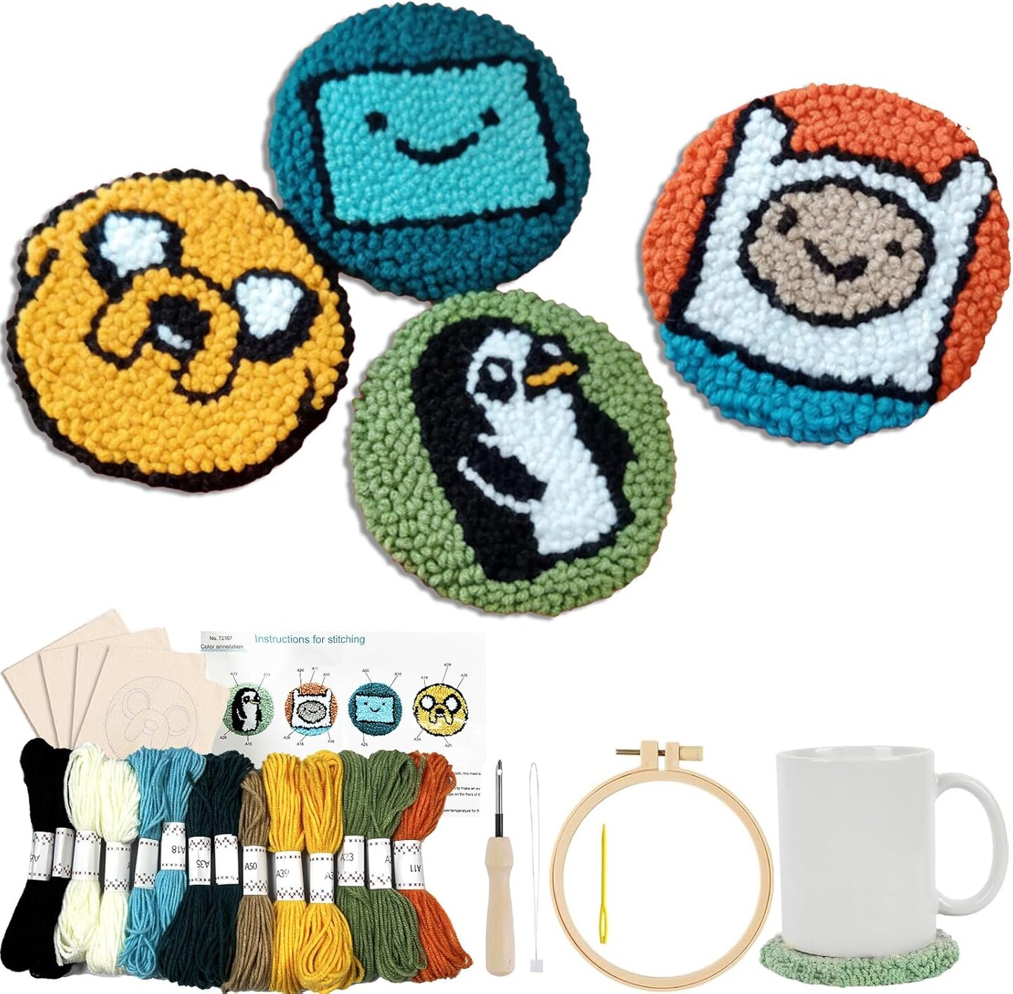 Adventure Time Punch Needle Kit – 4-Character Set (Finn, Jake, BMO, Gunter) with Hoop, Yarn & Instructions – Beginner-Friendly DIY Craft Gift