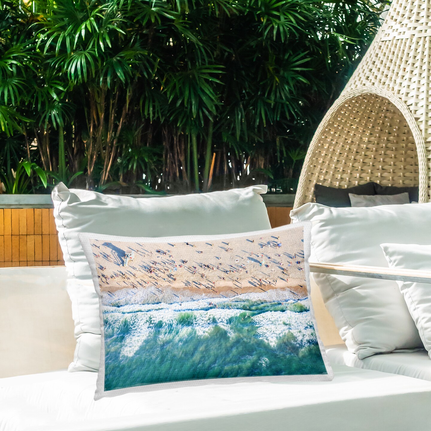 Aerial Tide Beach Foam Outdoor Printed Pillow Design by Sisi and Seb, 14 x 7 x 20