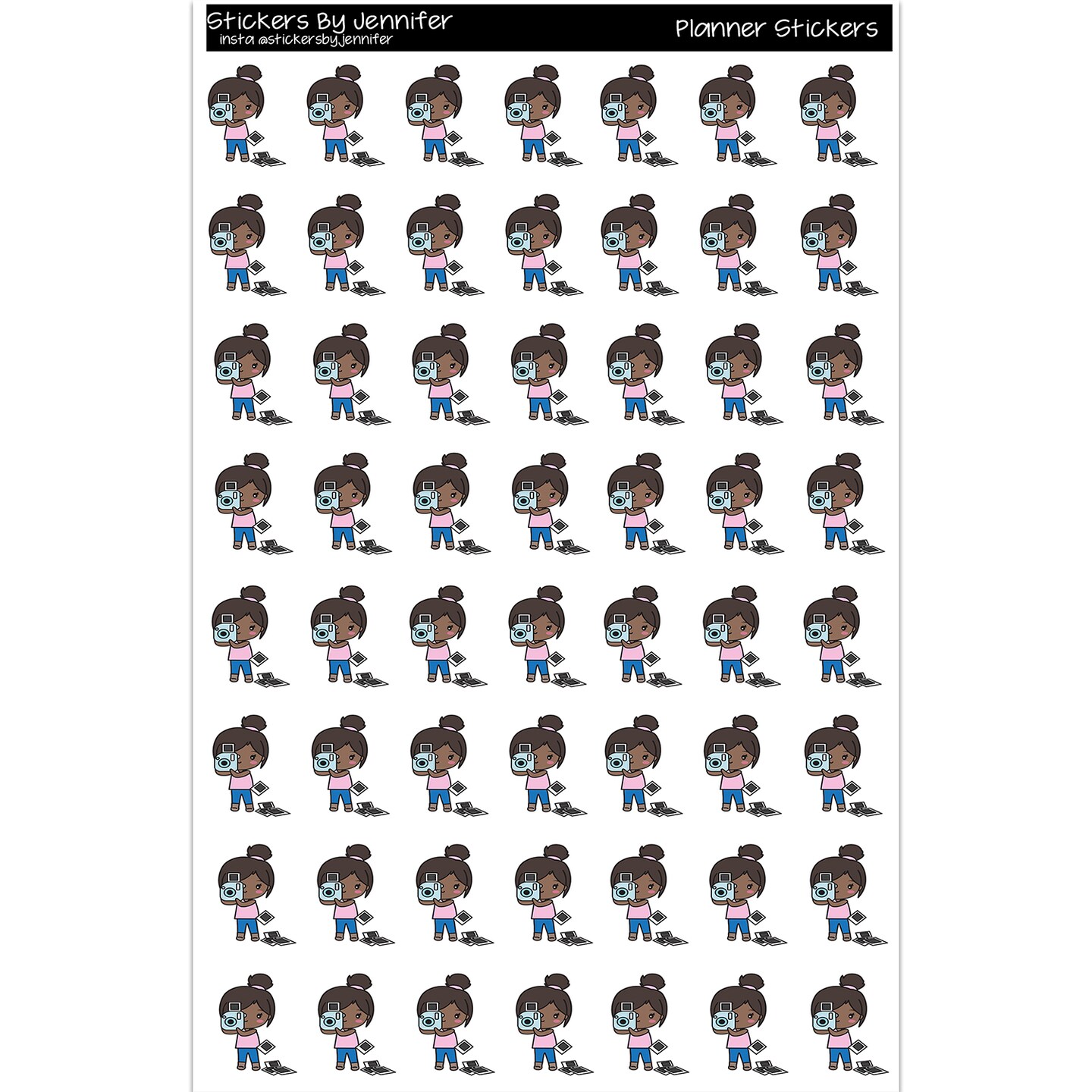 African American Chibi Girl Social Media Photos Planner Stickers