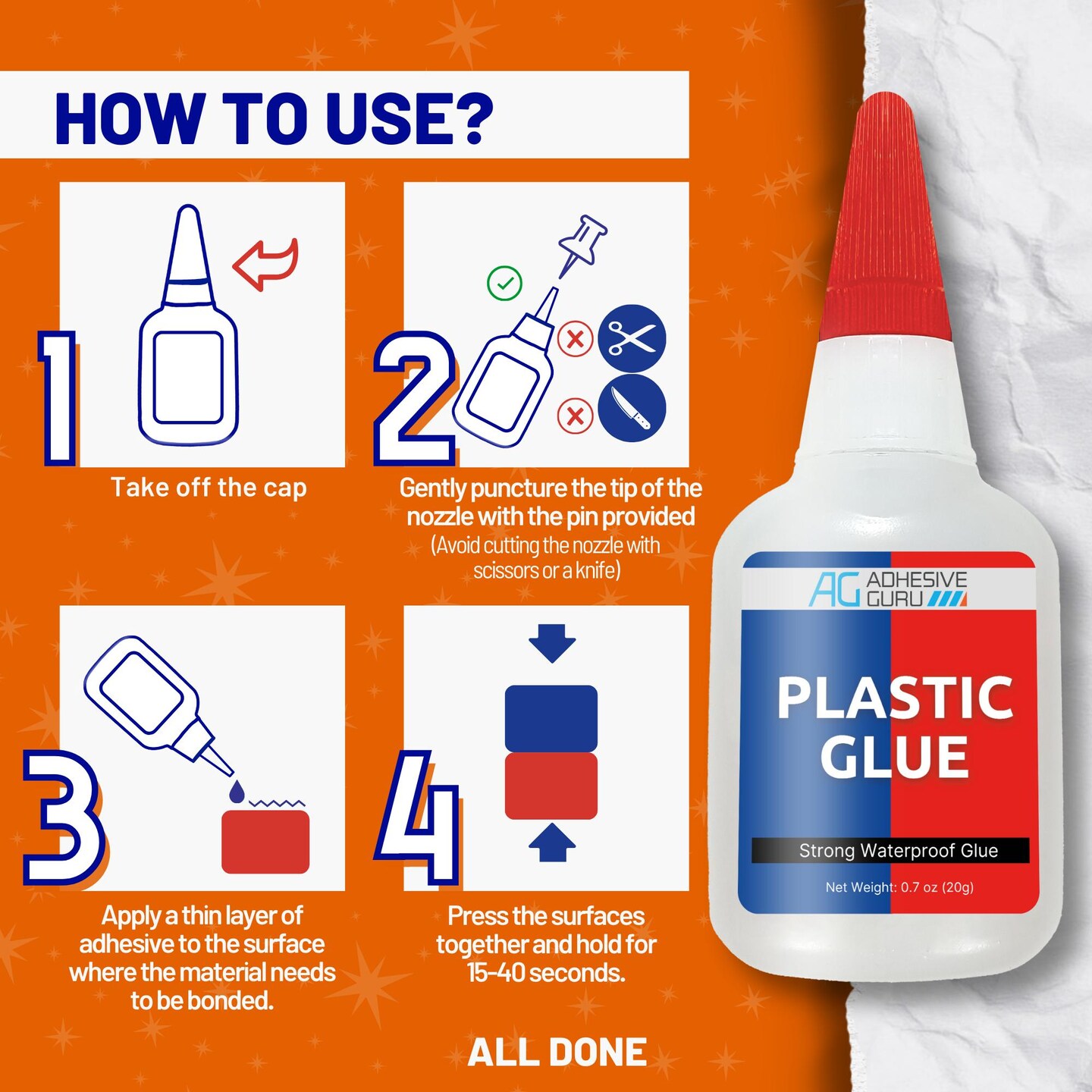 AG Plastic Repair Kit – Plastic Glue 0.7 oz. Clear CA Glue & Activator Spray 3.38 fl oz, Fast-Drying Super Glue for Plastic DIY Repairs, Models, Toys, & 3D Printing