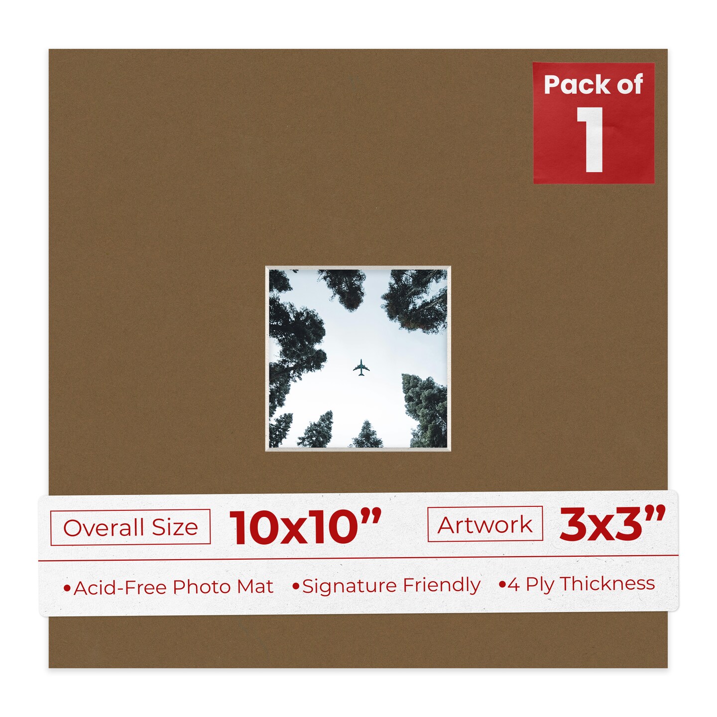Aged Oak Brown Mat Board for 10x10 Frames - Fits 3x3 Photos