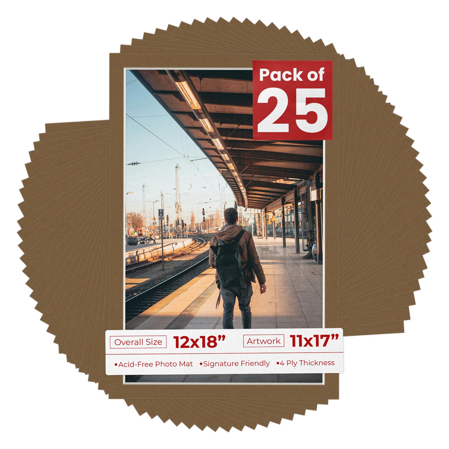 Aged Oak Brown Mat Board for 12x18 Frames - Fits 11x17 Photos
