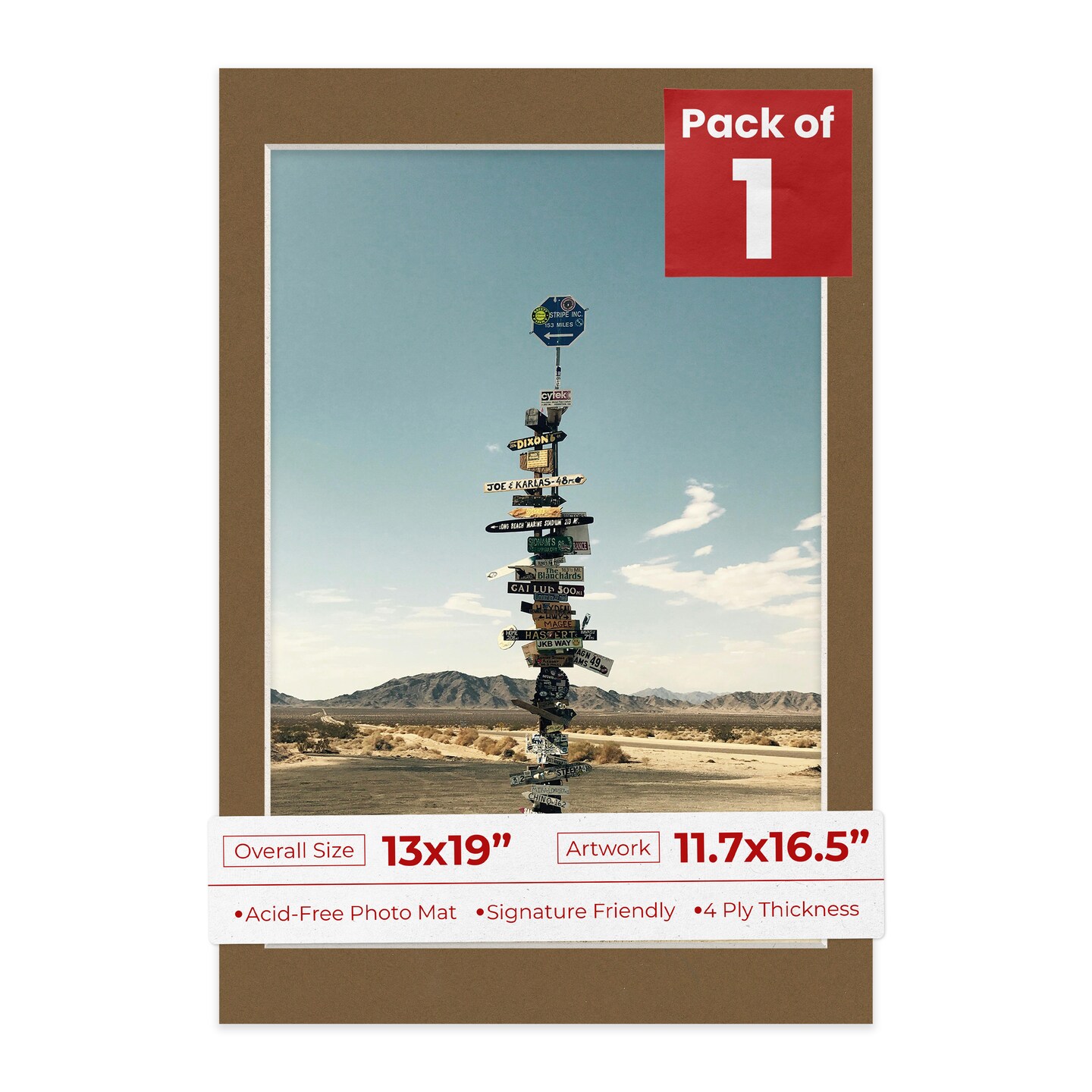 Aged Oak Brown Mat Board for 13x19 Frames - Fits 11.7x16.5 Photos